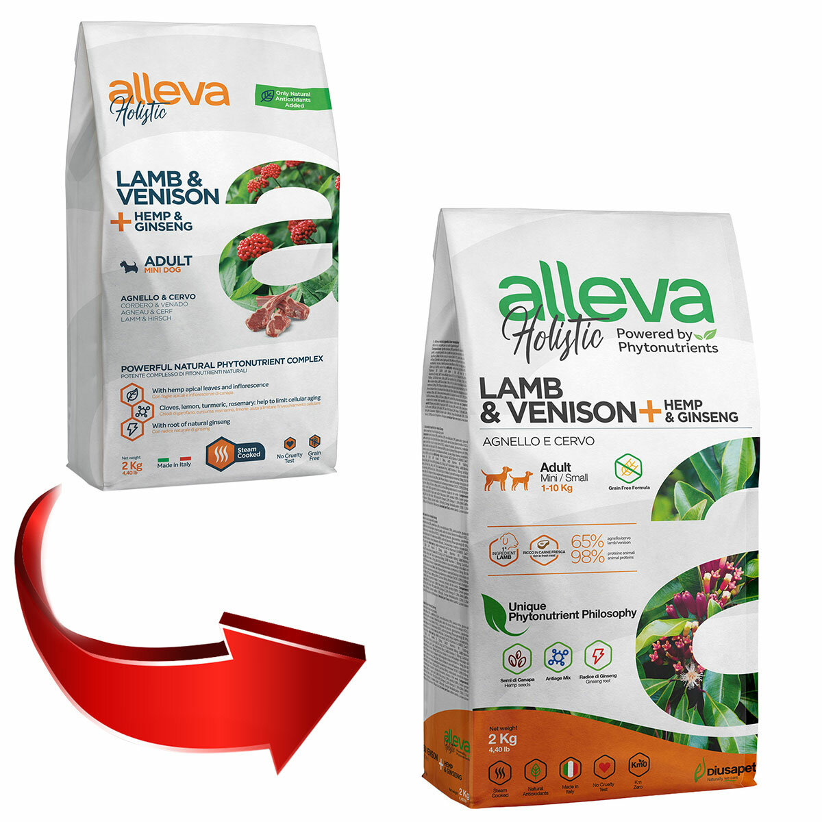ALLEVA HOLISTIC ADULT DOG MINI LAMB & VENISON беззерновой для взрослых собак маленьких пород с ягненком, олениной, коноплей и женьшенем (2 кг) информация: