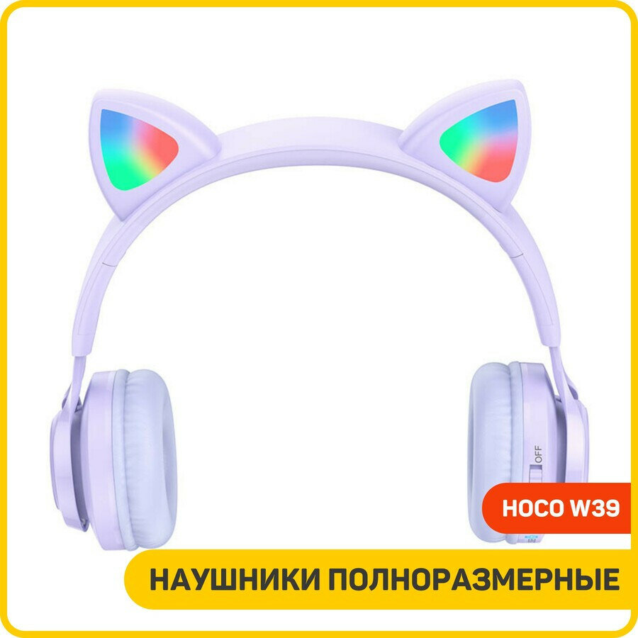 Наушники полноразмерные беспроводные Hoco W39 Cat Ear (Bluetooth) фиолетовый
