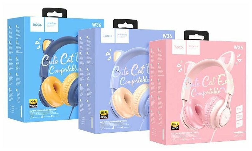 10 цен на Наушники проводные накладные Hoco W36 Cute Cat полуночный синий