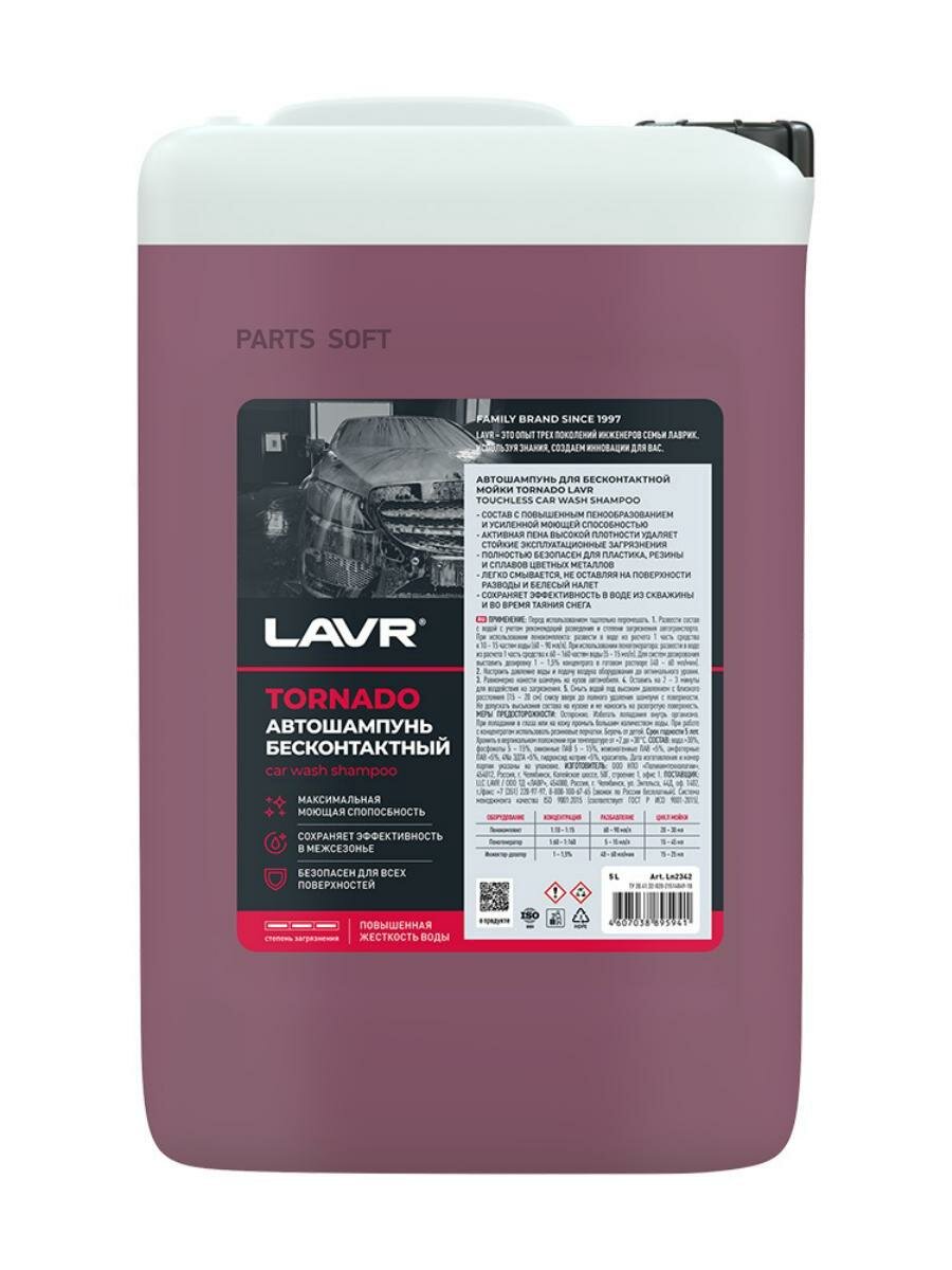 Автошампунь Lavr Tornado, для бесконтактной мойки, концентрат, моющая активность 9.8, для жёсткой воды, канистра 5л, арт. Ln2342 3 439 ₽