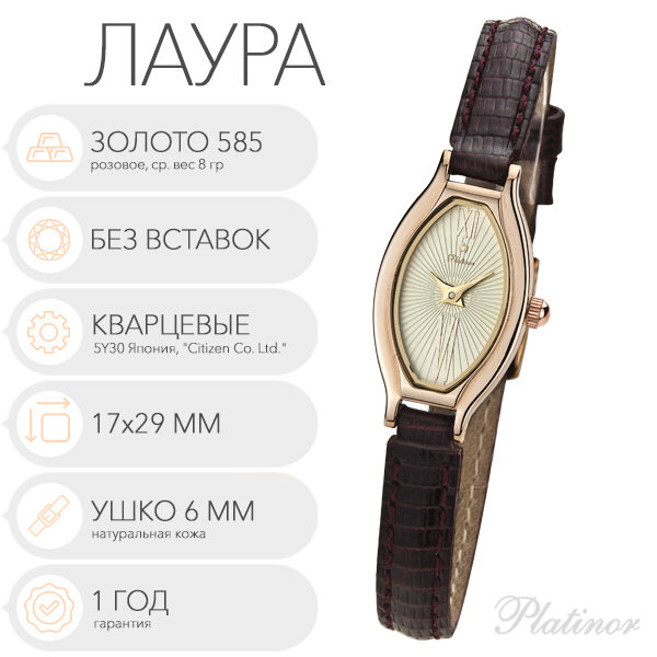 Platinor Женские золотые часы Лаура, арт. 98050.422 информация: