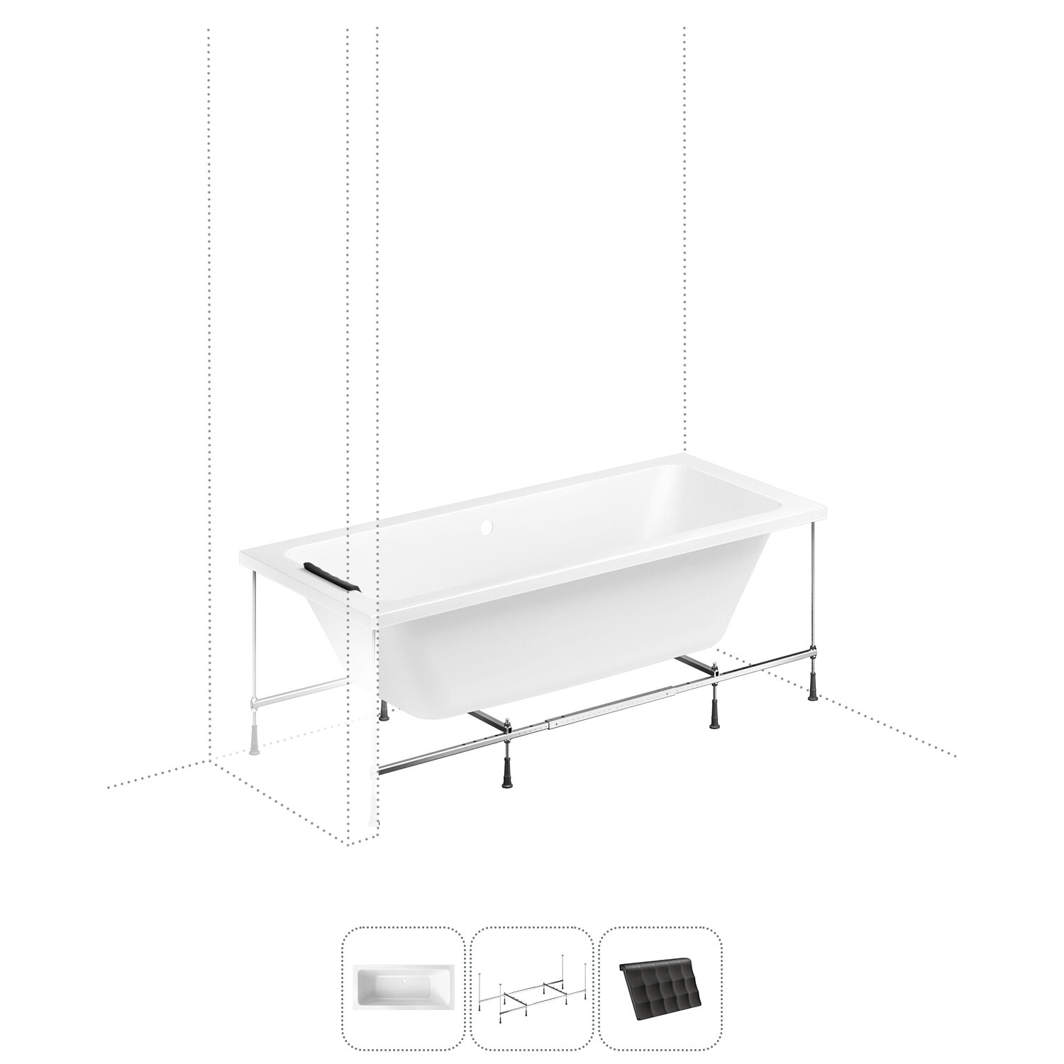 Ванна акриловая 180х80 Lavinia Boho Pure S1-3710008P в наборе 3 в 1: прямоугольная ванна 180 х 80 см, усиленный металлический каркас, мягкий подголовник
