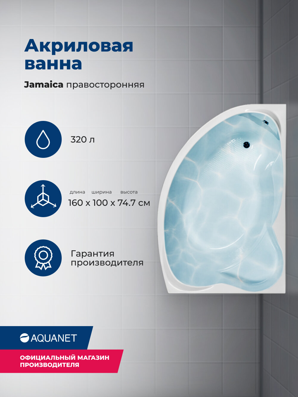 Отзывы на Акриловая ванна Aquanet Jamaica 160x100 R 00205503 с каркасом, цвет белый