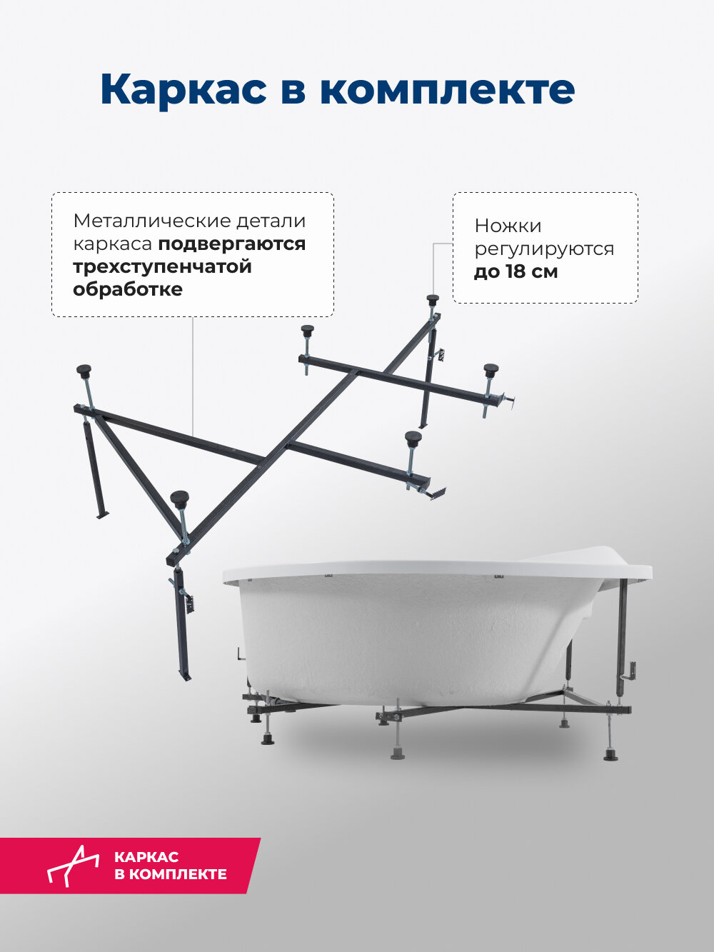 | Подробная комплектация | ванна, каркас |