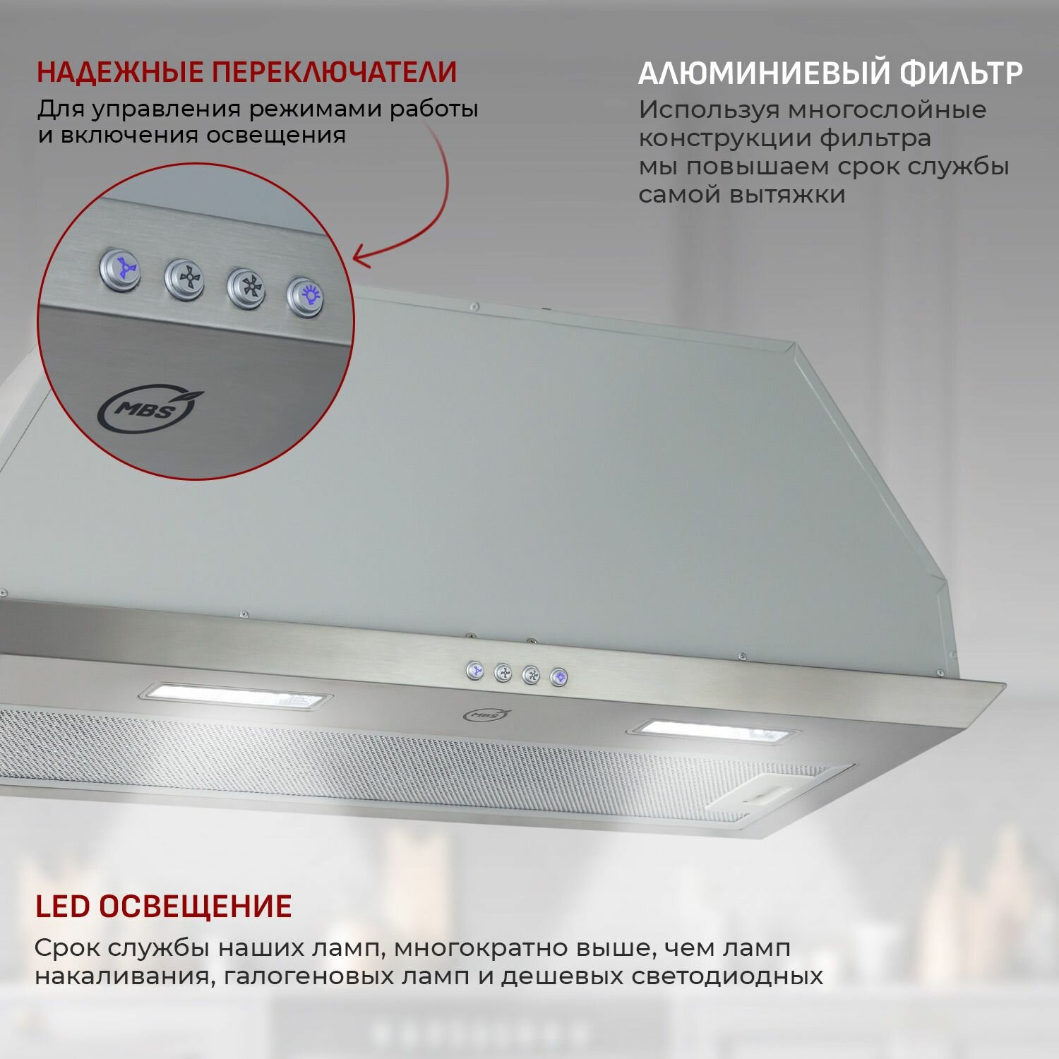 10 цен на Кухонная вытяжка встраиваемая MBS LOBIVIA 190 INOX/90 см/производительность 1030м3/ч, низкий уровень шума.