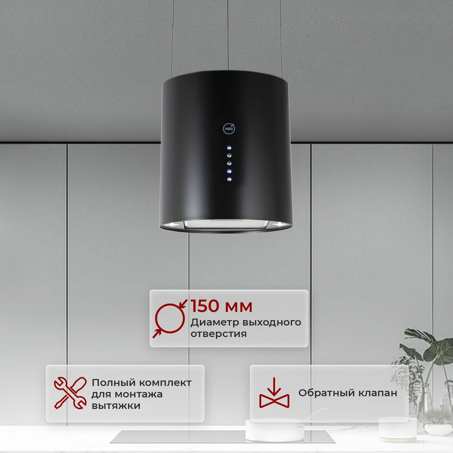 Отзывы на Кухонная вытяжка островная MBS PETUNIA 135 ISLAND BLACK/35 см/производительность 1030м3/ч, низкий уровень шума.