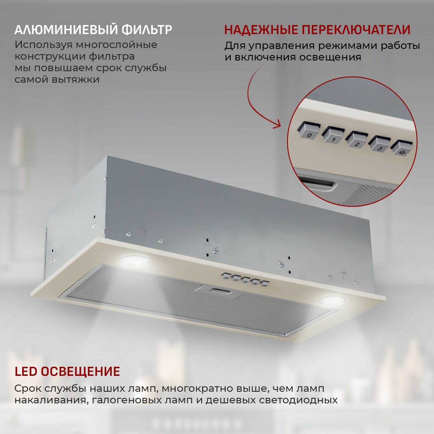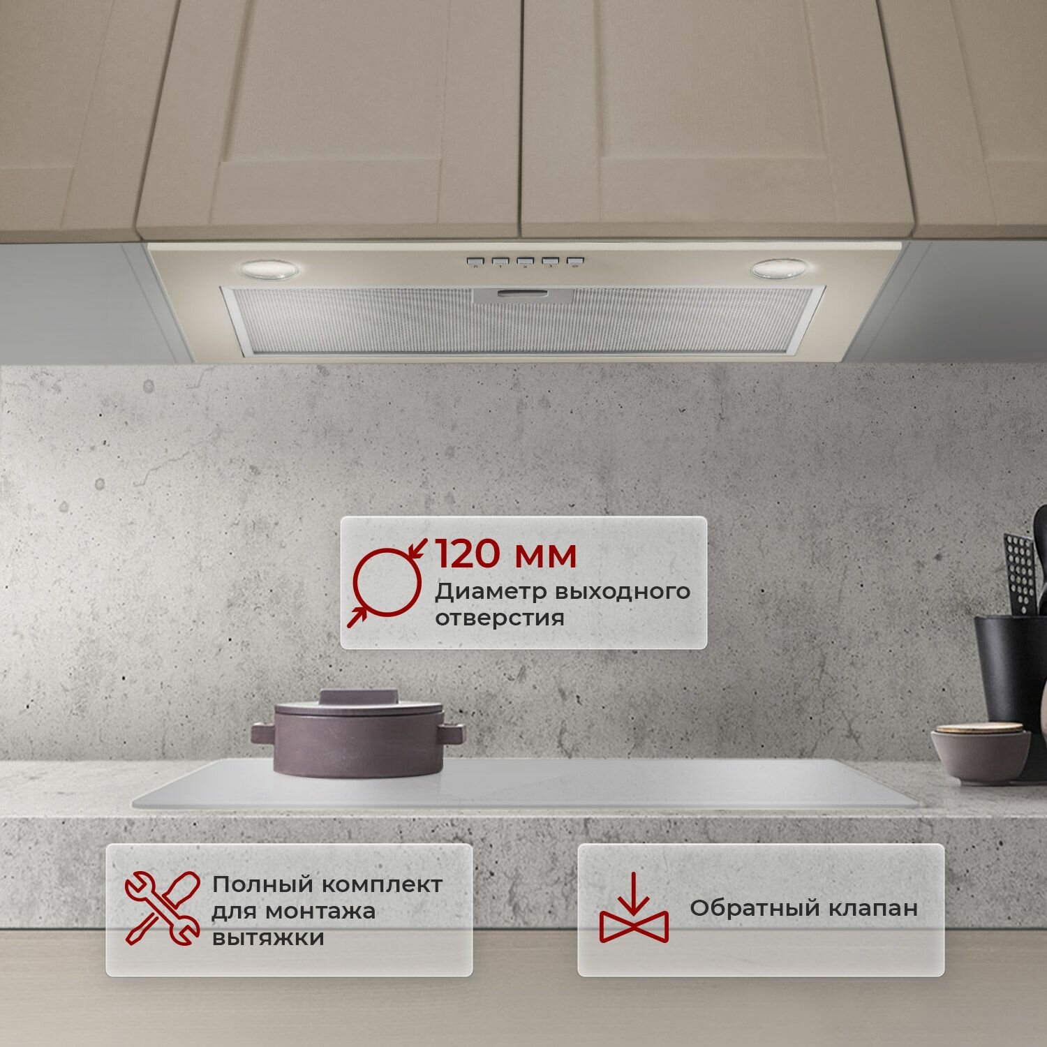 Отзывы на Кухонная вытяжка встраиваемая MBS MONSTERA 160 IVORY/60 см/производительность 750м3/ч, низкий уровень шума.