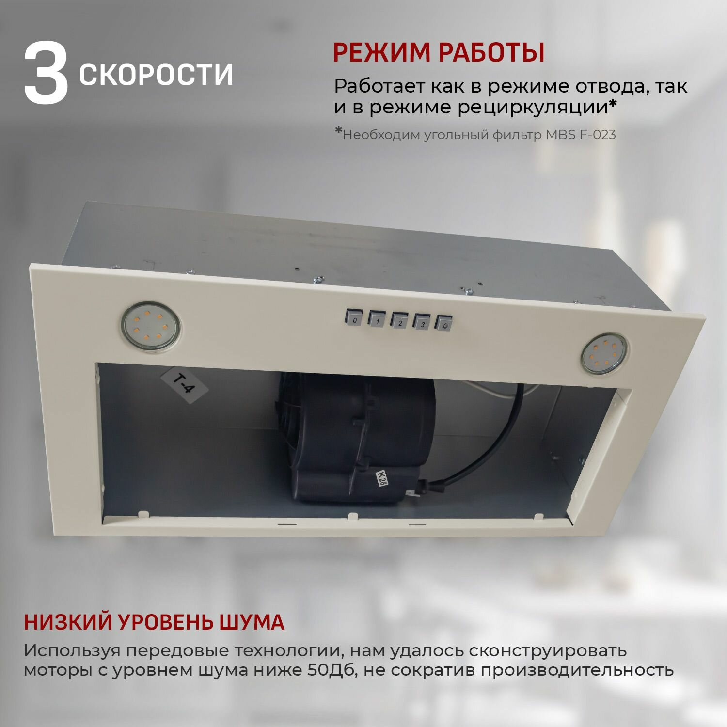 Кухонная вытяжка встраиваемая MBS MONSTERA 160 IVORY/60 см/производительность 750м3/ч, низкий уровень шума. информация: