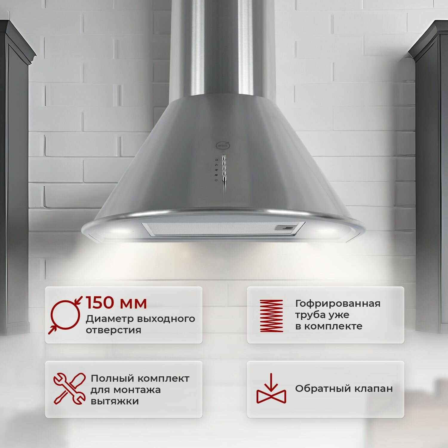 10 цен на Кухонная вытяжка MBS GASTERIA 160 INOX/60 см/производительность 950м3/ч, низкий уровень шума.