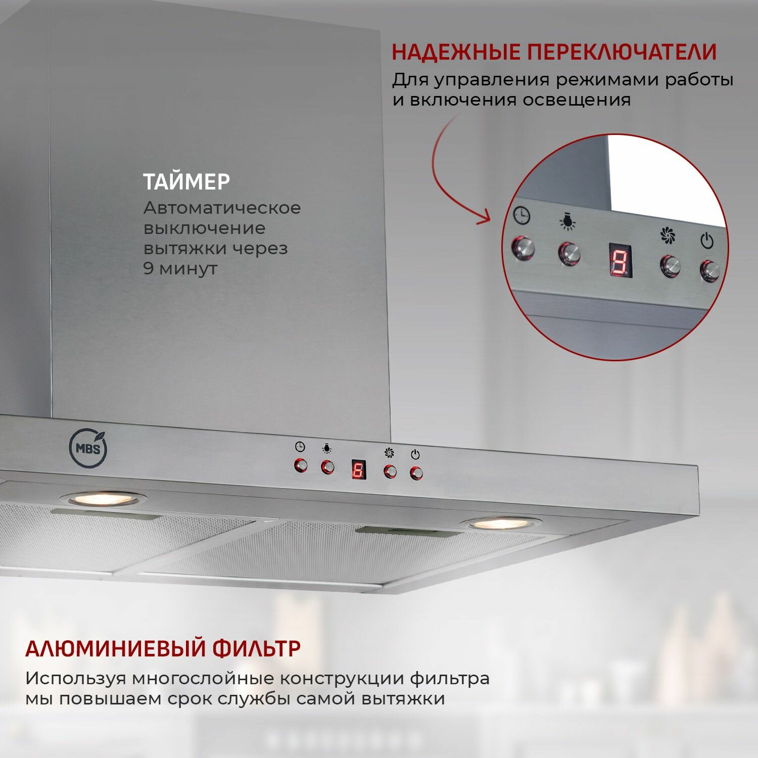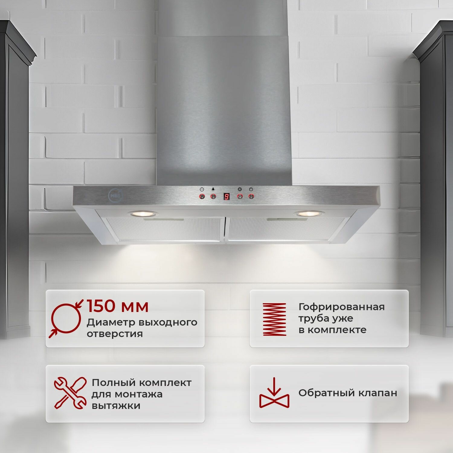 10 цен на Кухонная вытяжка MBS MUSA 160 INOX/60 см/производительность 950м3/ч, низкий уровень шума.