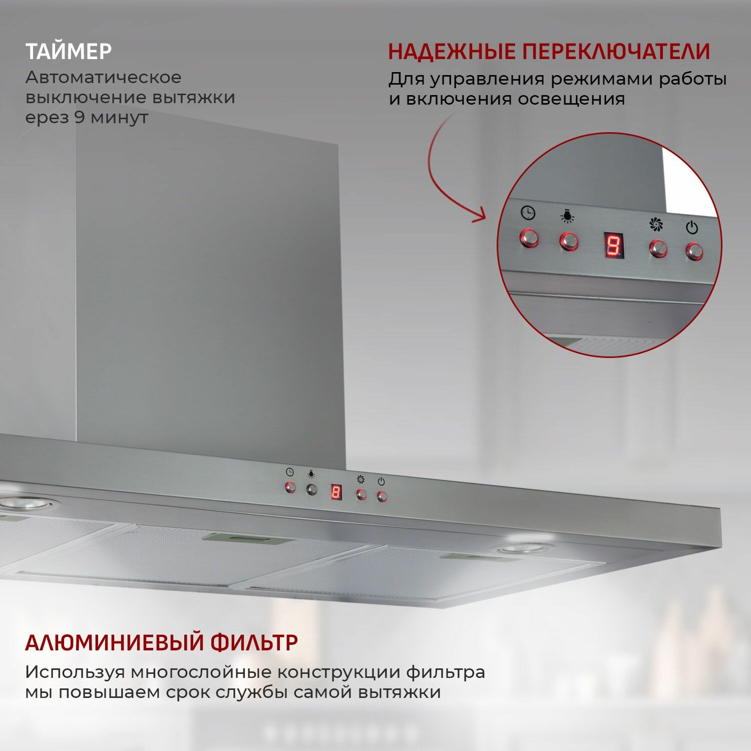 10 цен на Кухонная вытяжка MBS MUSA 190 INOX/90 см/производительность 950м3/ч, низкий уровень шума.