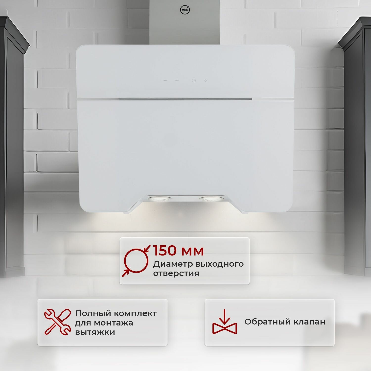 10 цен на Кухонная вытяжка наклонная MBS FELICIA 160 GLASS WHITE/60 см/производительность 750 м3/ч, низкий уровень шума