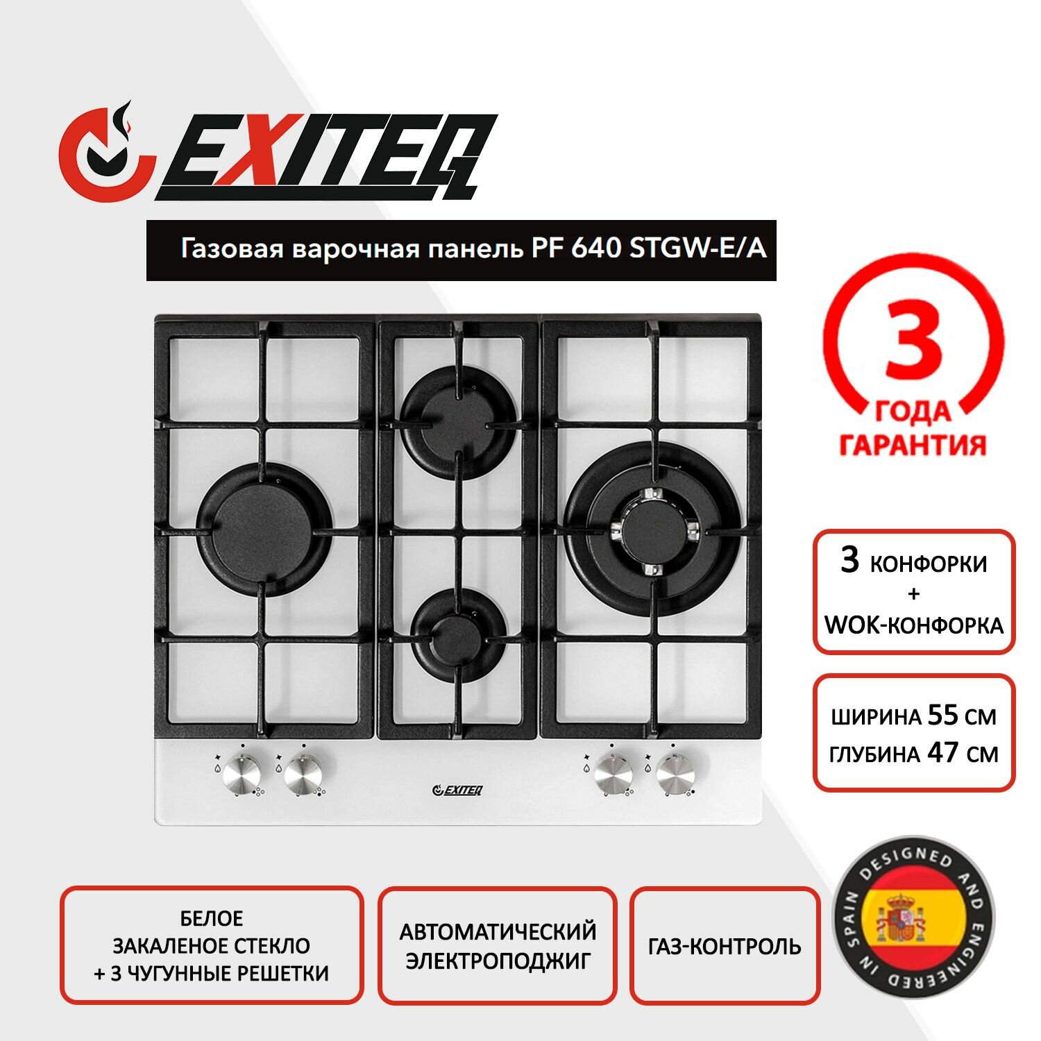 Газовая варочная панель EXITEQ PF640STGW-E/A, белый