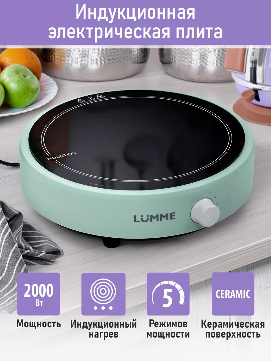 Электрическая плита LUMME LU-3630 Индукционная 2000Вт Черный жемчуг 1 конфорка керамика 5 программ