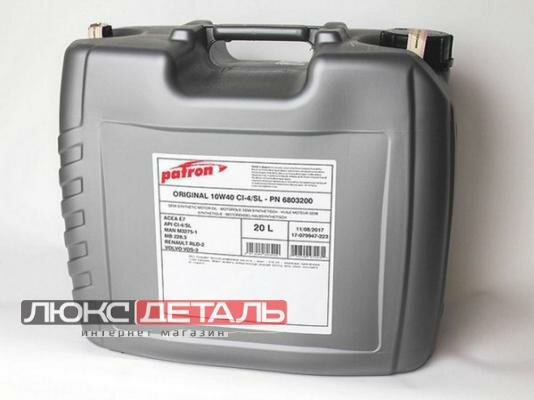 Масло моторное полусинтетическое 20л-для грузовых автомобилей ACEA E7/A3/B4, API CI-4/SL, ECF-2, CES 20076/77/78, DDC 93K215, DQC-III-10, M 3275-1, 228.3/229.1, RLD/RLD-2, VDS-3 PATRON 10W40 CI-4/SL 20L ORIGINAL