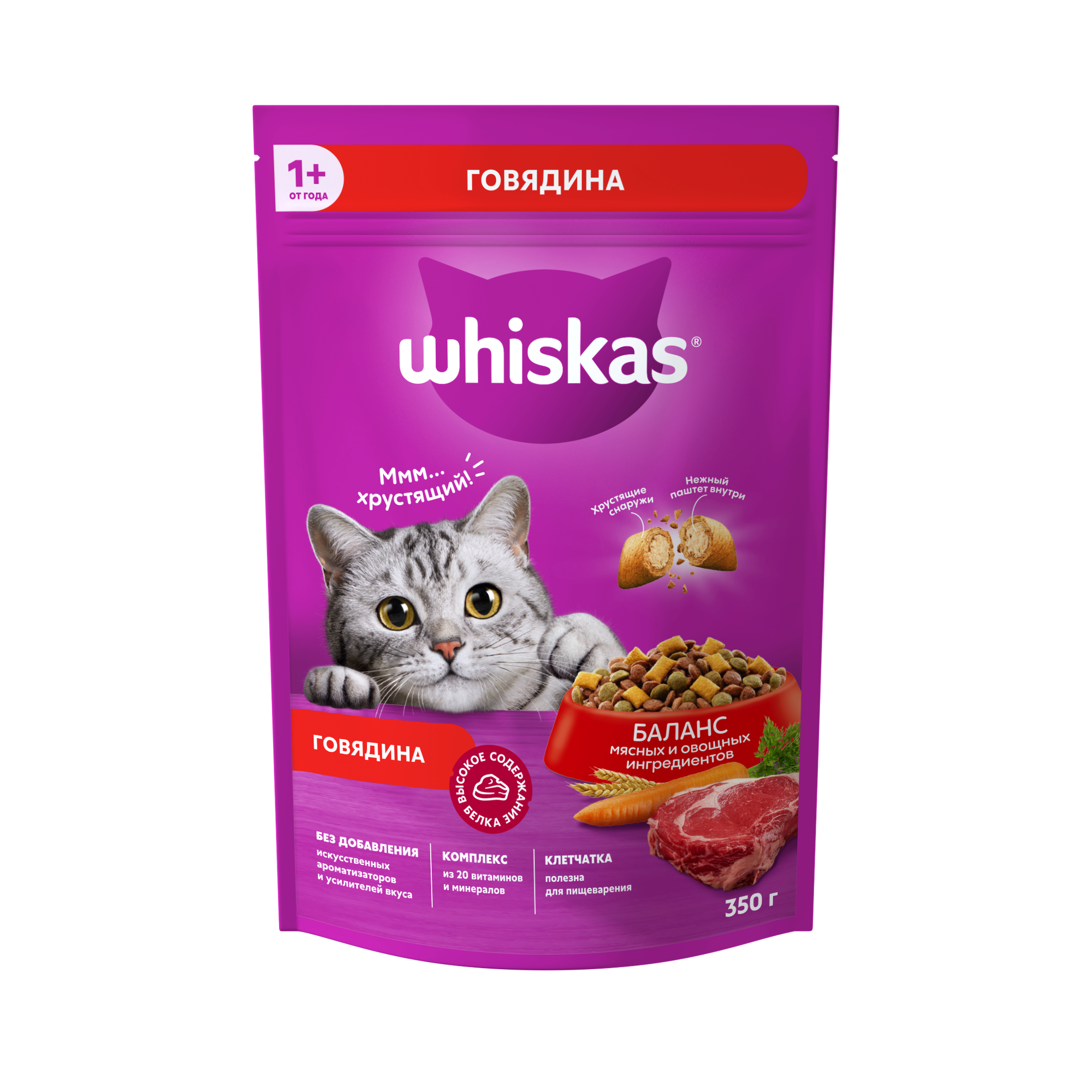 Сухой корм Whiskas для кошек, говядина, подушечки, 350 г