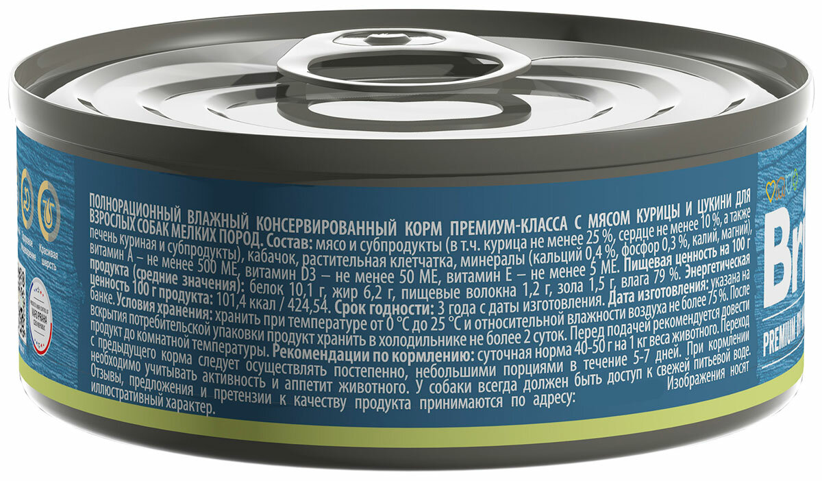 Консервированный корм BRIT PREMIUM BY NATURE DOG для взрослых собак маленьких пород с курицей и цукини (100 гр х 12 шт) информация: