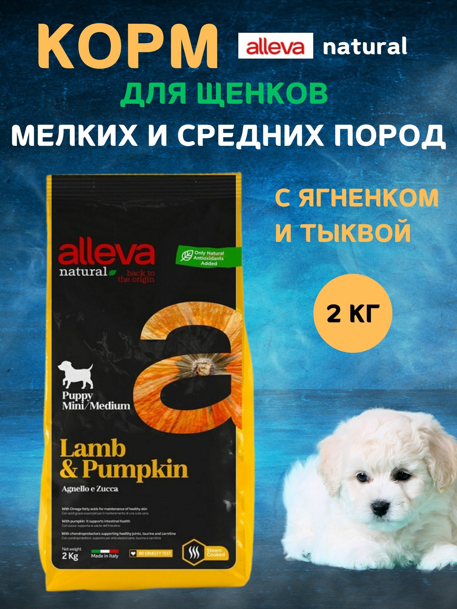 ALLEVA NATURAL PUPPY MINI/MEDIUM LAMB & PUMPKIN низкоз дл щен мален и сред пород с ягненк и тыквой 2 кг информация: