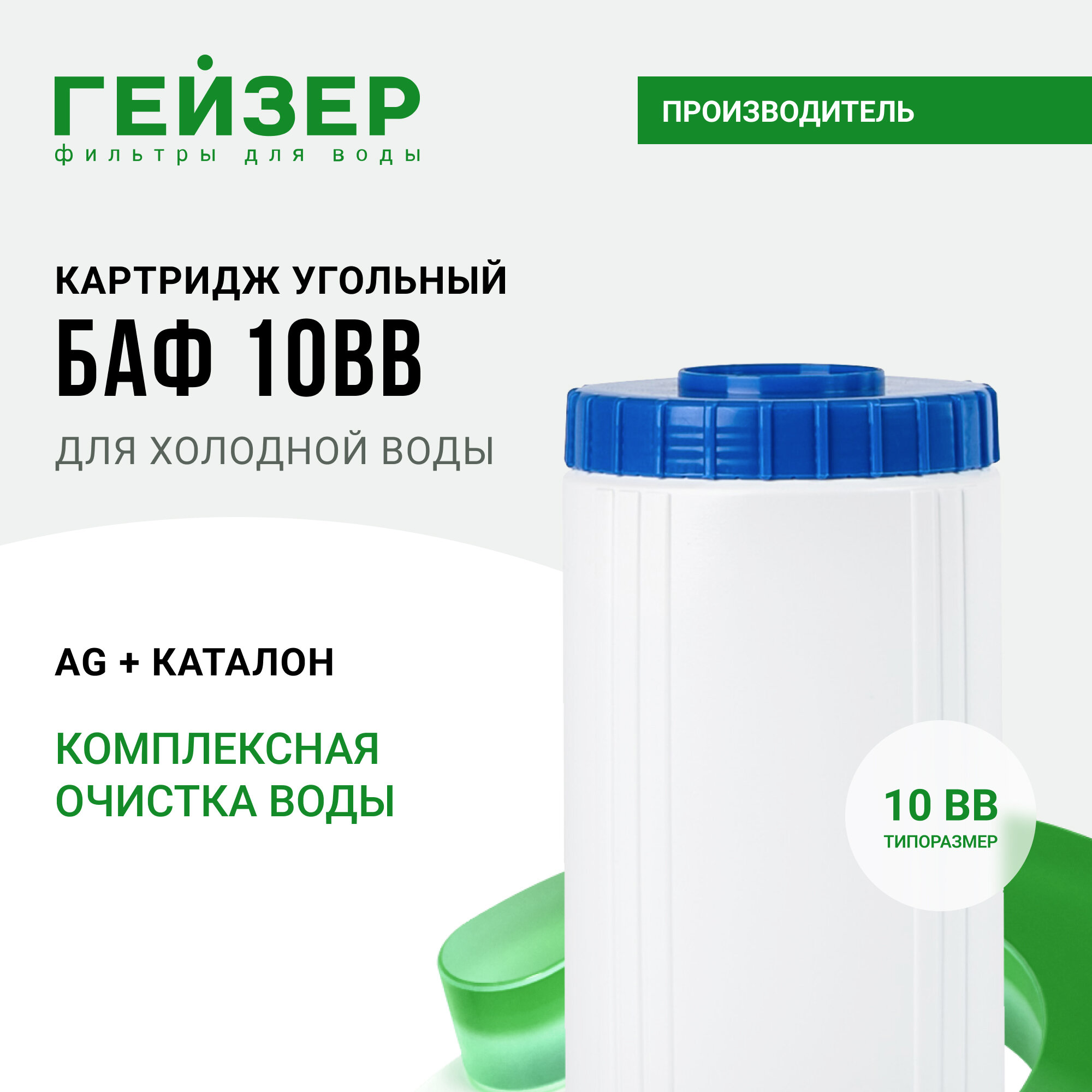10 цен на Картридж угольный БАФ 10ВВ, очистка воды от остаточного хлора, органических соединений, железа (при содержании до 2 мг/л) и других вредных примесей, 30633