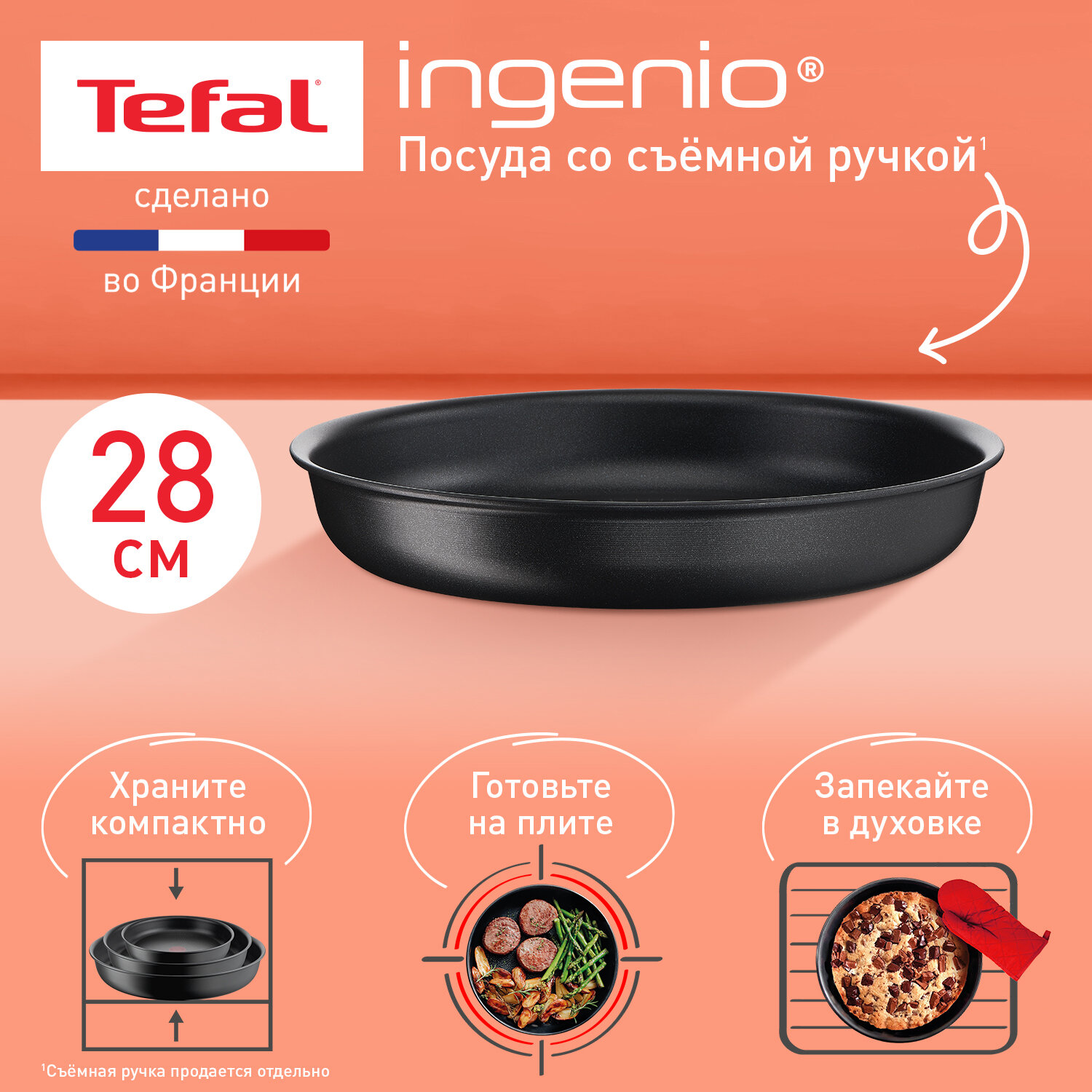 Сковорода с антипригарным покрытием Tefal Ingenio Unlimited 28 см, подходит для всех плит, включая индукционные, сделана во Франции, ручка продается отдельно 5 899 ₽