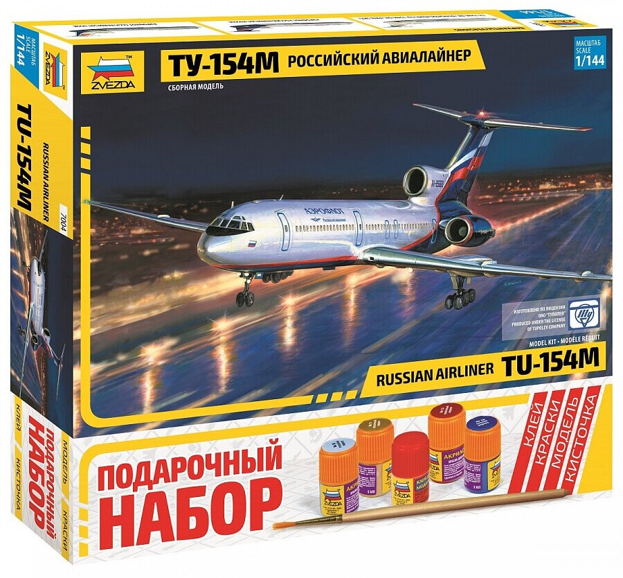 Сборная модель ТУ-154М, подарочный набор, 1/144 / Ту-154 информация: