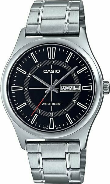MTP-V006L-7B Casio наручные часы кварцевые WR30 (3 атм) мужские хром, черный отображение числа, отображение дня недели минеральное стекло 3 564 ₽
