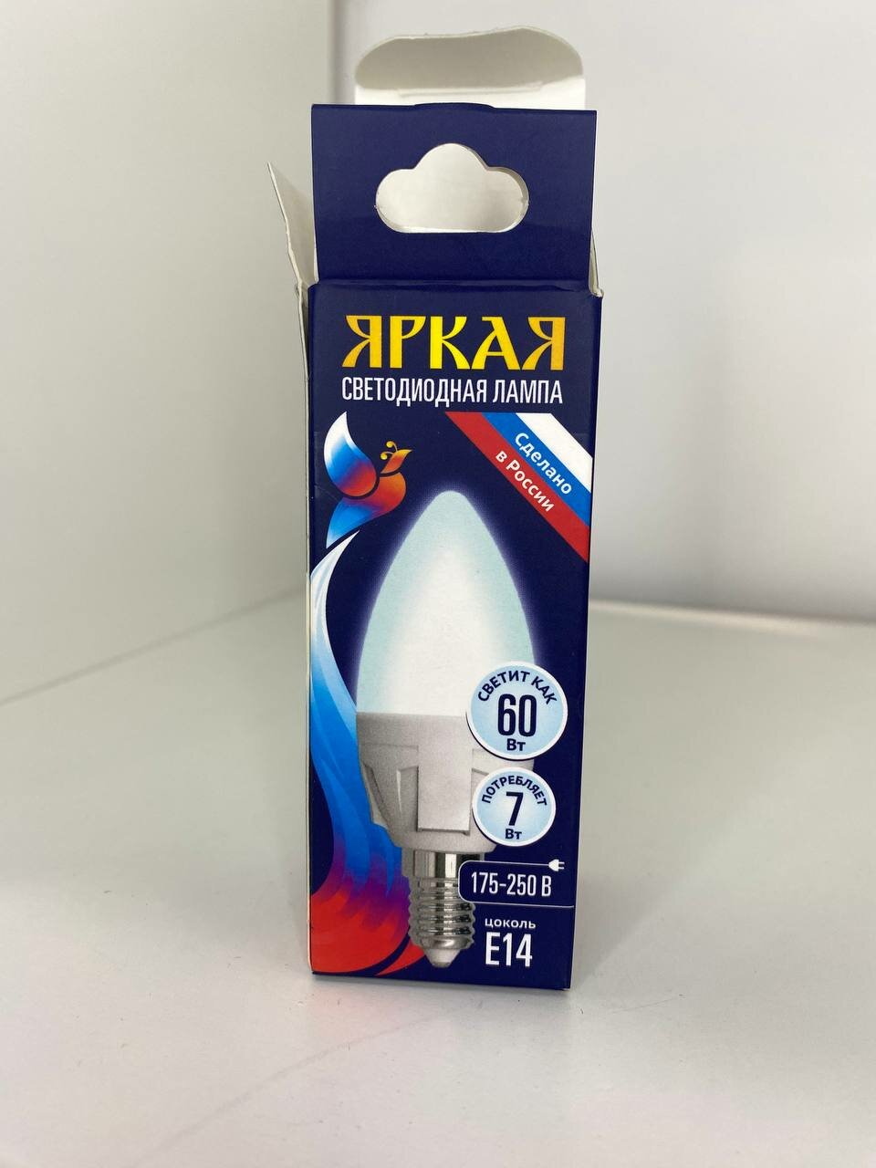Светодиодная лампочка "Pulsar Свеча E27 7W(660lm) 4000K 4K 109x37 пластик/алюминий противоудар. ALM-C-7E27-4000-1, 1 шт.