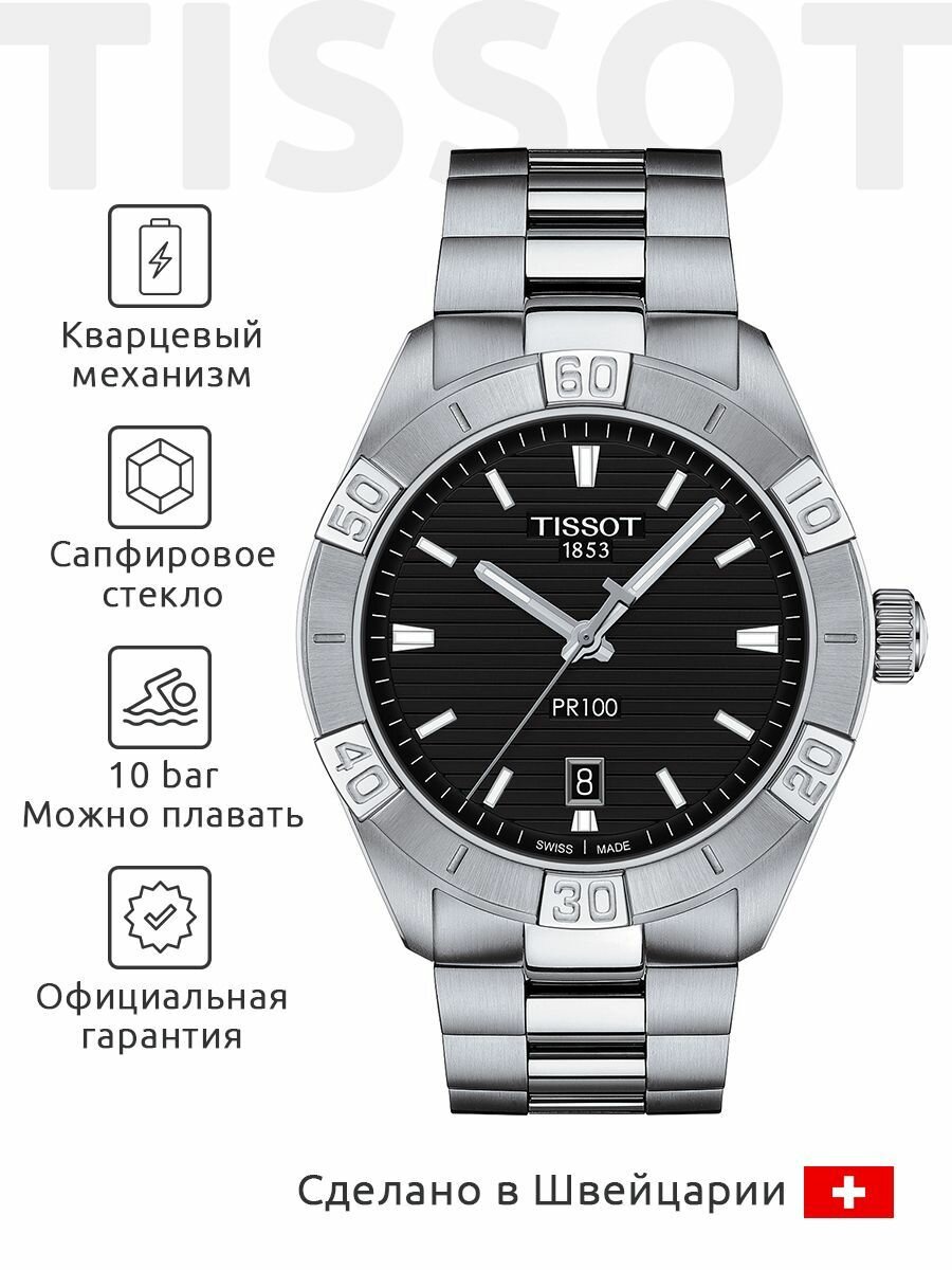 Наручные часы TISSOT T-Classic Tissot\PR100\Sport\Gent\T016171605100, серебряный, черный