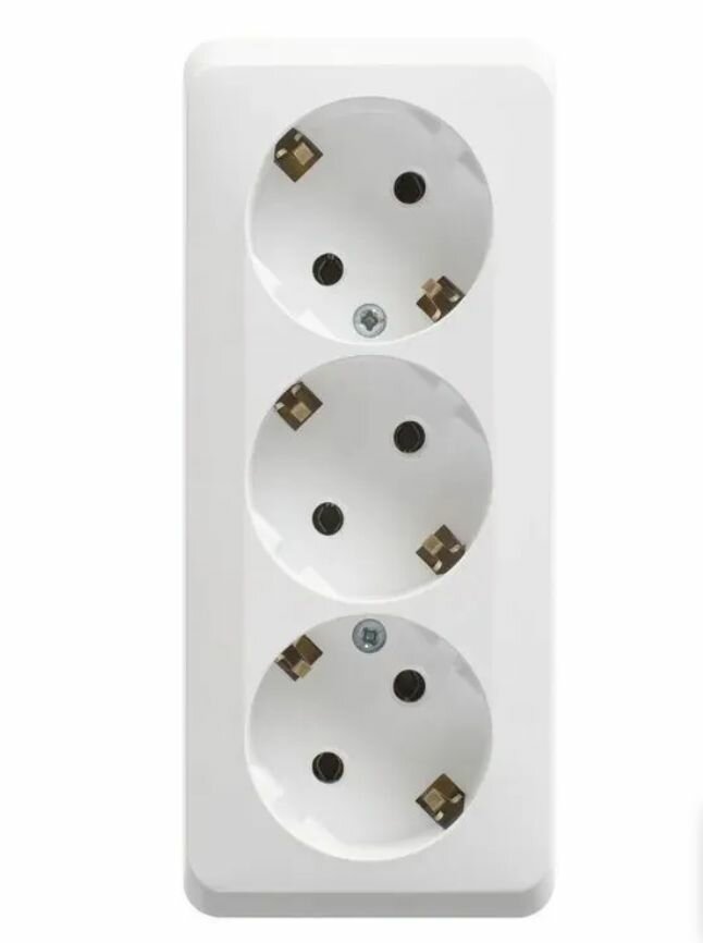 Розетка Этюд белая, трехместная, с заземлением, наружная, 16 А