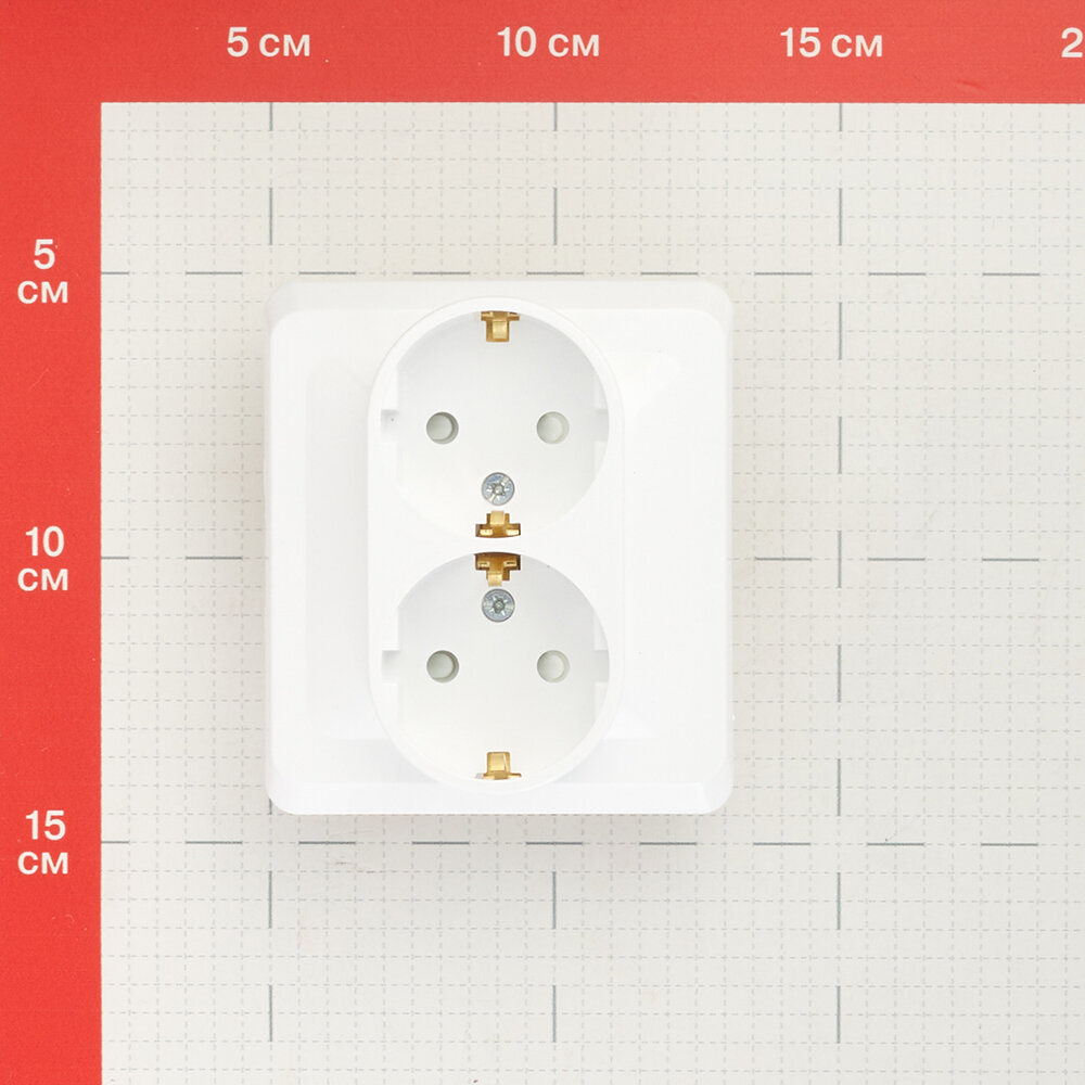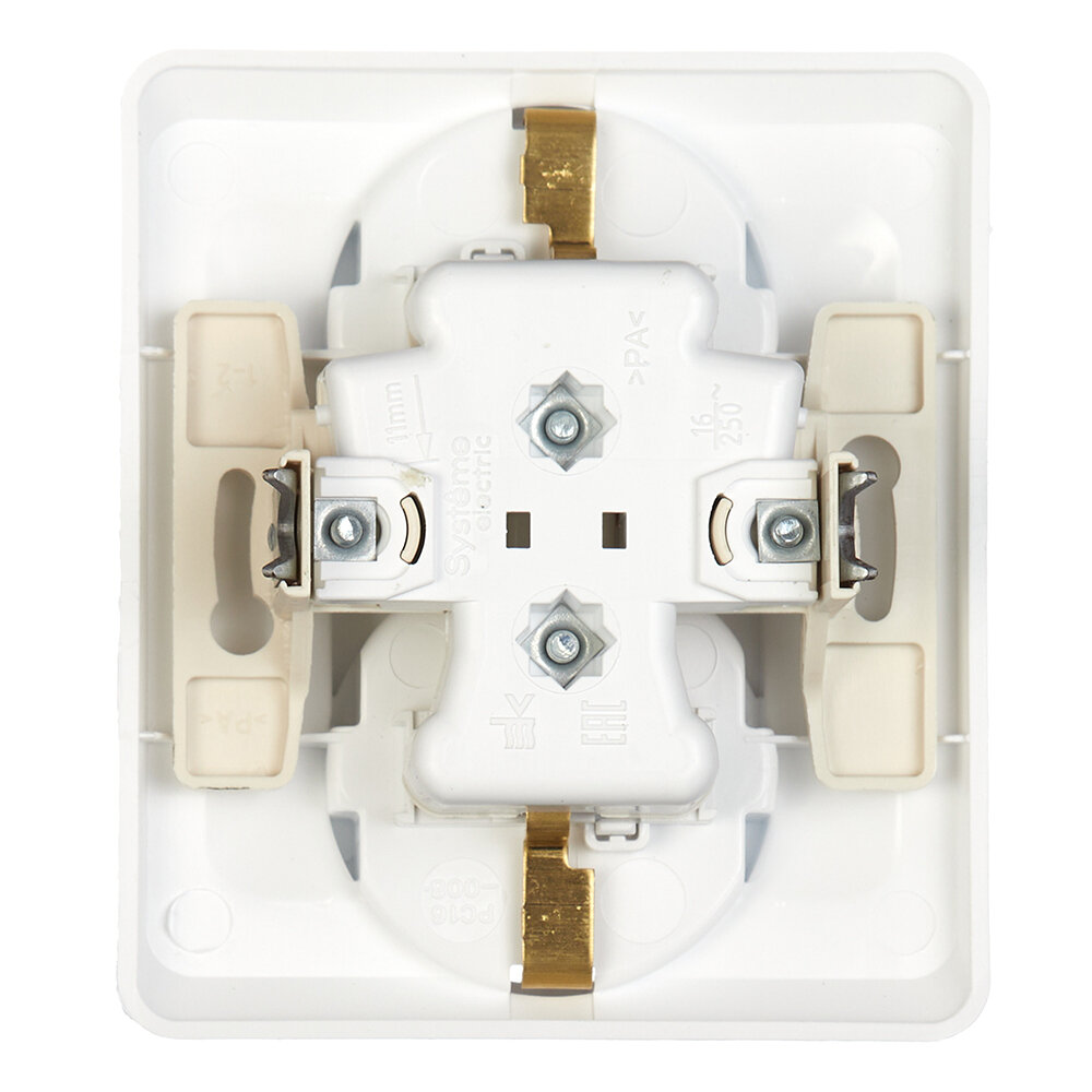 Розетка Этюд двойная 16А IP20 250В с заземлением с защитными шторками Systeme Electric/Schneider Electric скрытая установка в сборе с рамкой белый PC16-008B