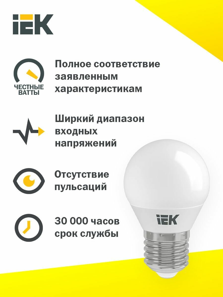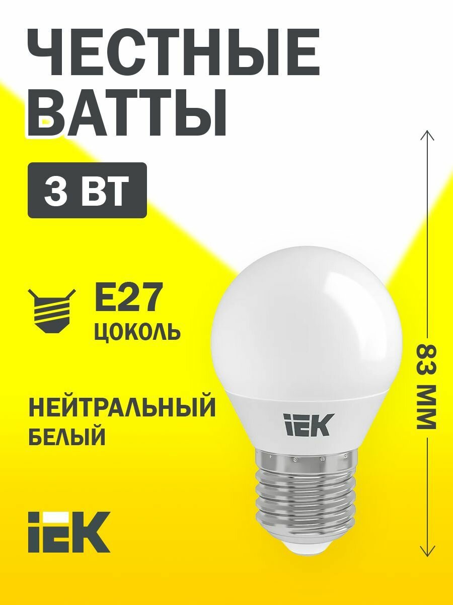 Лампа светодиодная ECO G45 шар 3Вт 230В 4000К E27, IEK LLE-G45-3-230-40-E27 (1 шт.)
