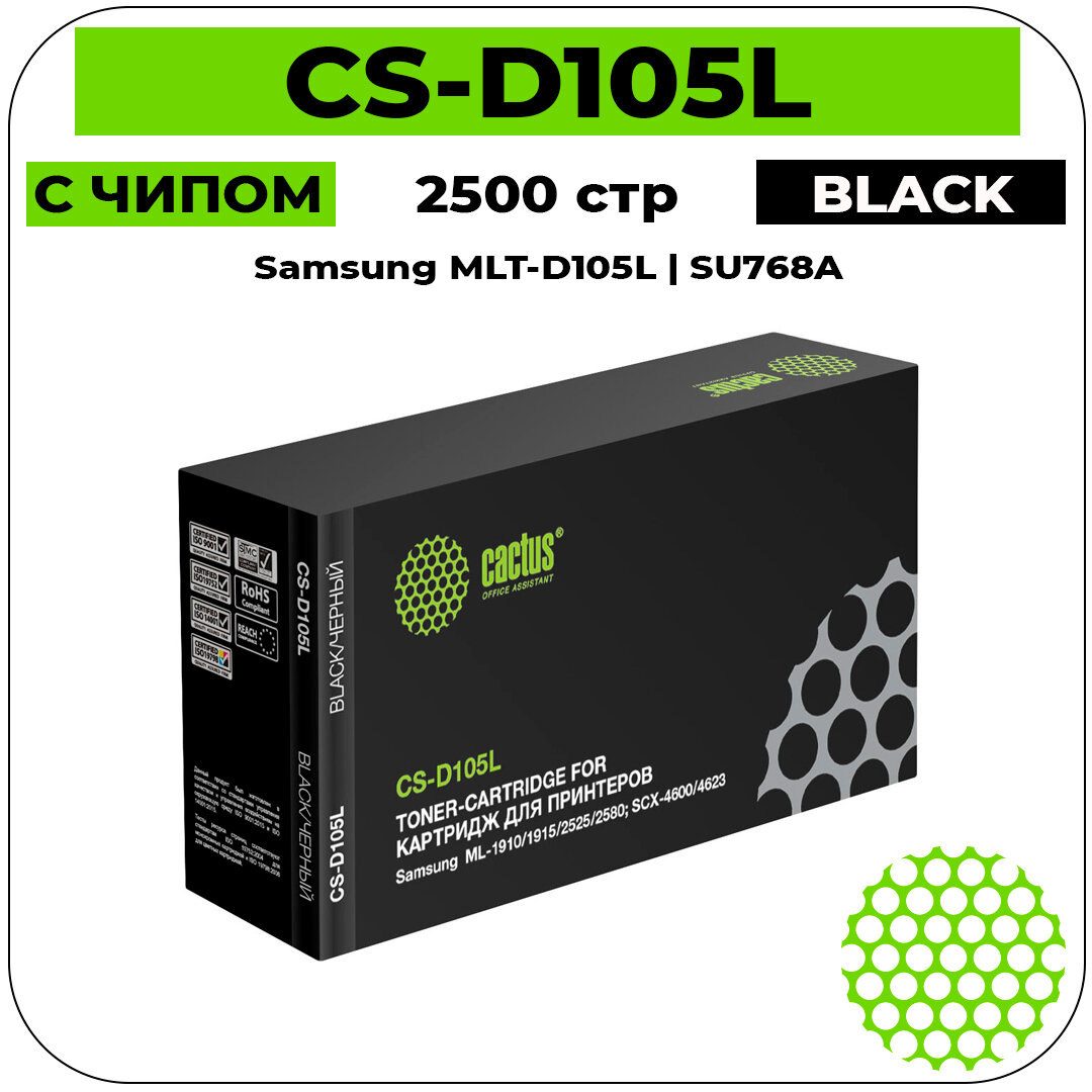 Картридж Cactus CS-D105L MLT-D105L черный, для SAMSUNG ML-1910/1915/2525/2580/SCX-4600/4623/SF-650/650P, ресурс до 2500 страниц