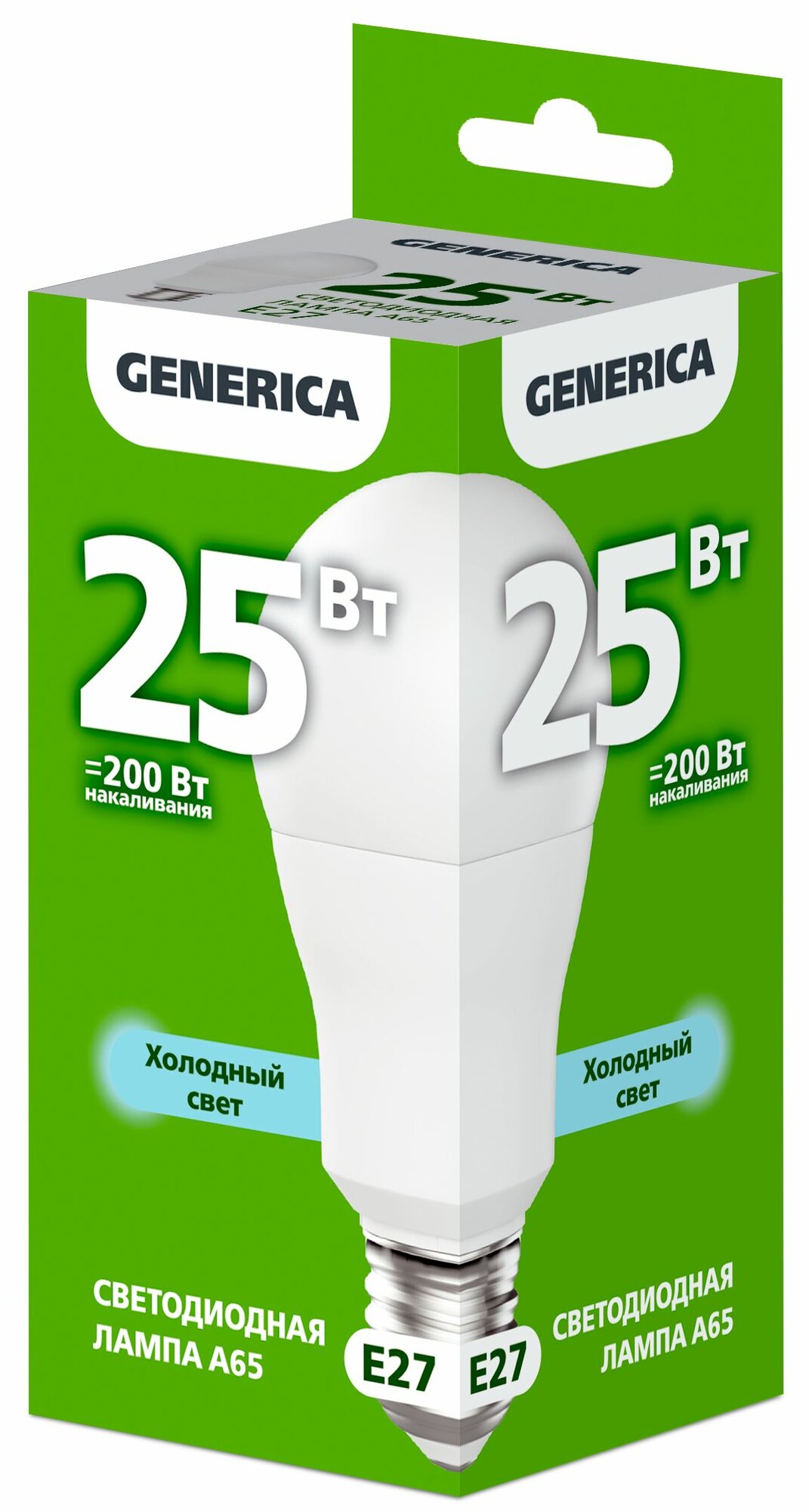 IEK GENERICA ЛОН A65 E27 25W(2500lm) 6500K 6K 65x135 матов. информация:
