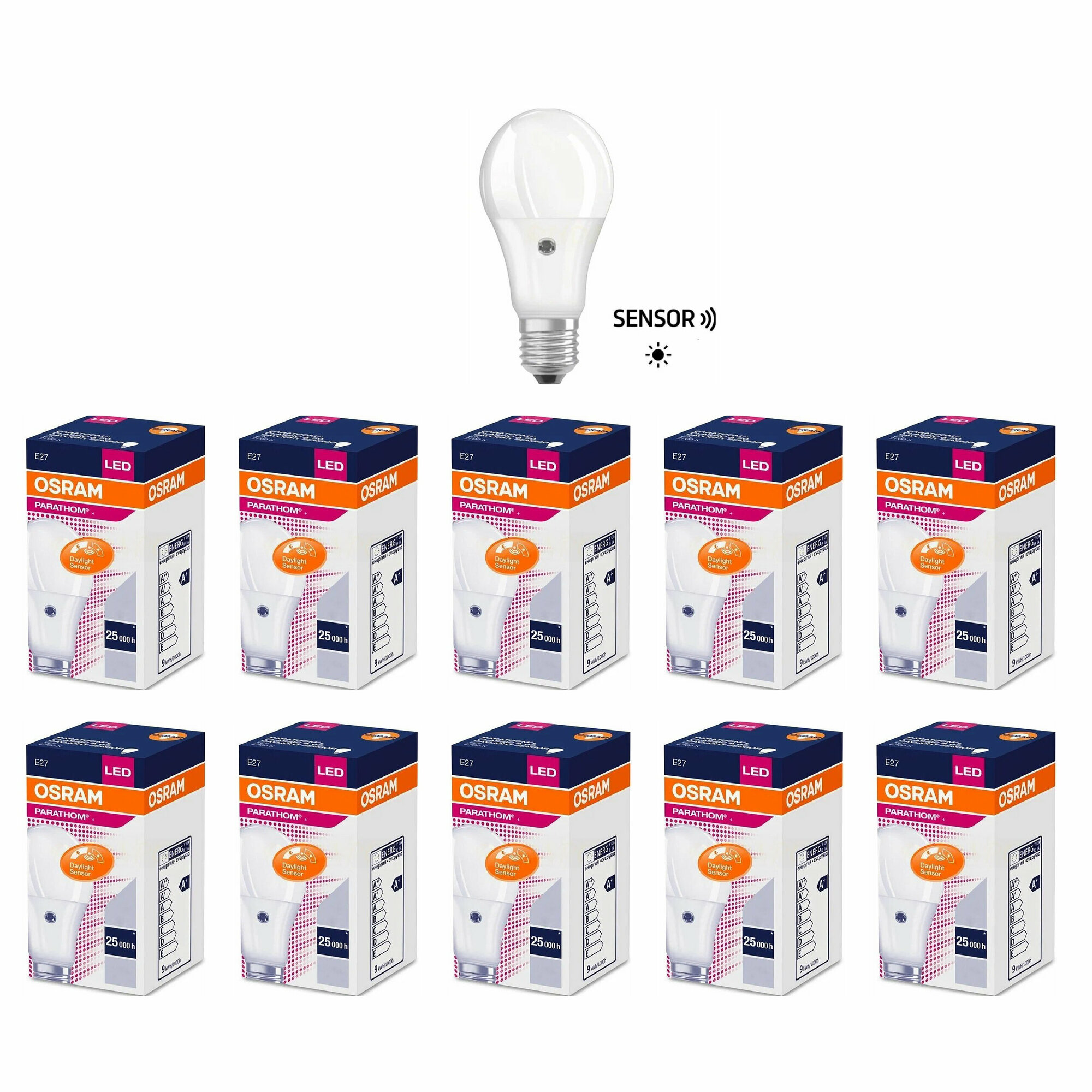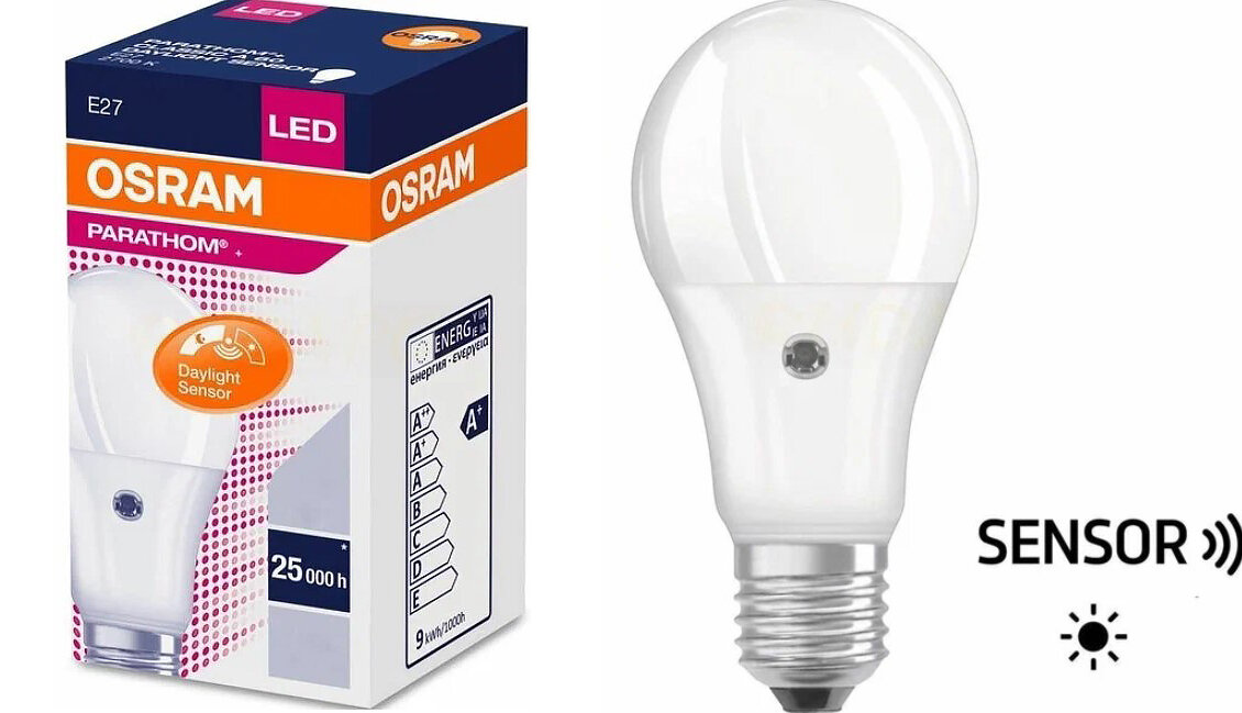 Лампа Светодиодная OSRAM Груша Sensor 9Вт 220В E27 806Лм 2700К С датчиком дневного света Теплый белый свет, уп. 10шт 6 161 ₽