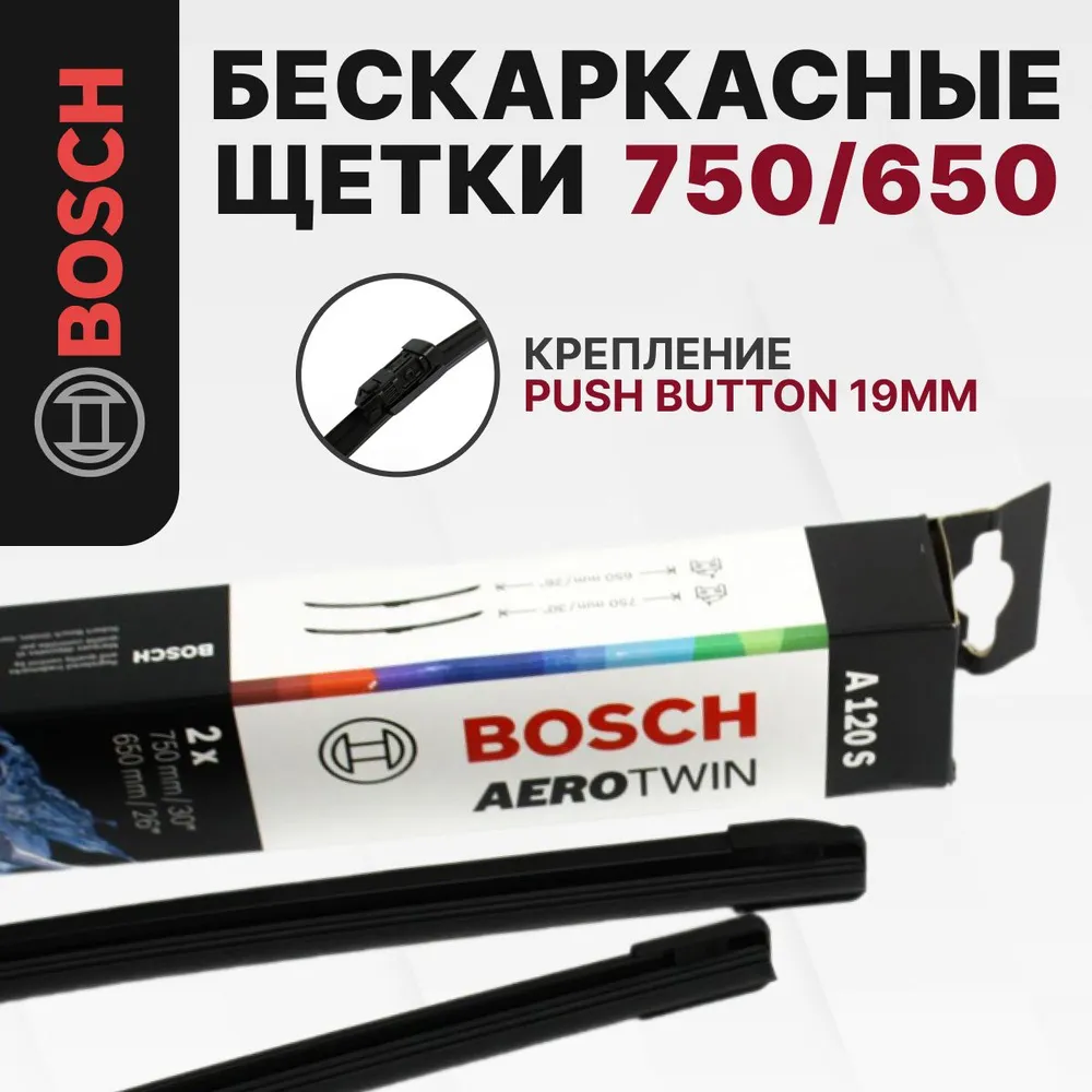 Щетки стеклоочистителя BOSCH бескаркасные Aerotwin 650/530мм крепление кнопка (Push button), 3397007225 3 400 ₽