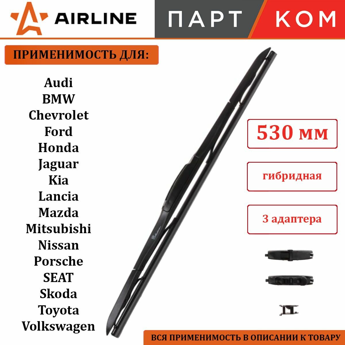 10 цен на Щетка стеклоочистителя гибридная 530 мм AIRLINE AWBH530 + 3 адаптера для а/м Audi, Kia, Mazda, Nissan, Skoda, Toyota, Volkswagen