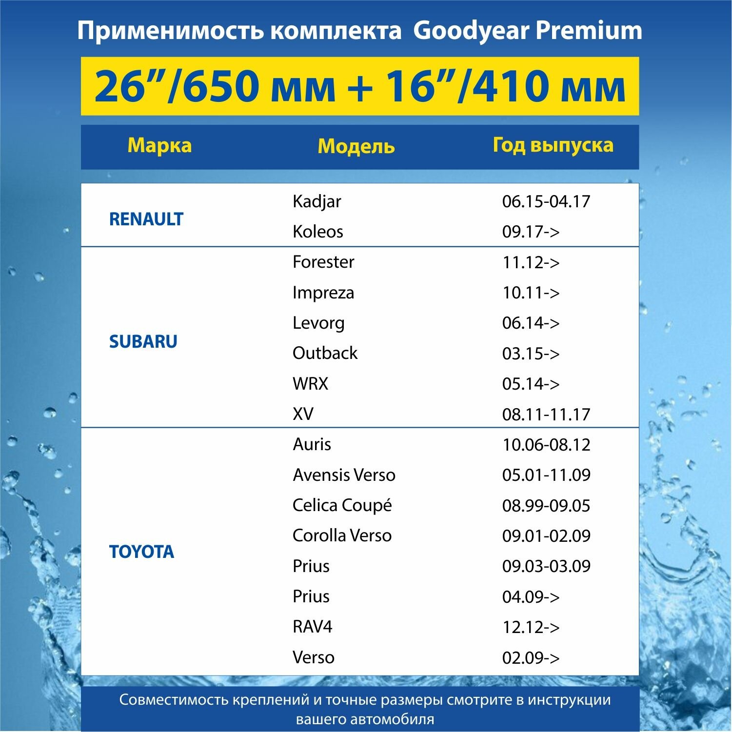 Отзывы на 2 Щетки стеклоочистителя в комплекте (65+41 см), Дворники для автомобиля GOODYEAR для KIA ; HONDA ; HYUNDAI