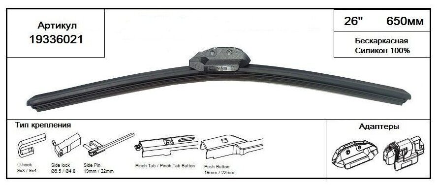 Щетка Ст/Оч. Бескаркасная (650Мм) 100% Силикон ACDelco арт. 19336021 информация: