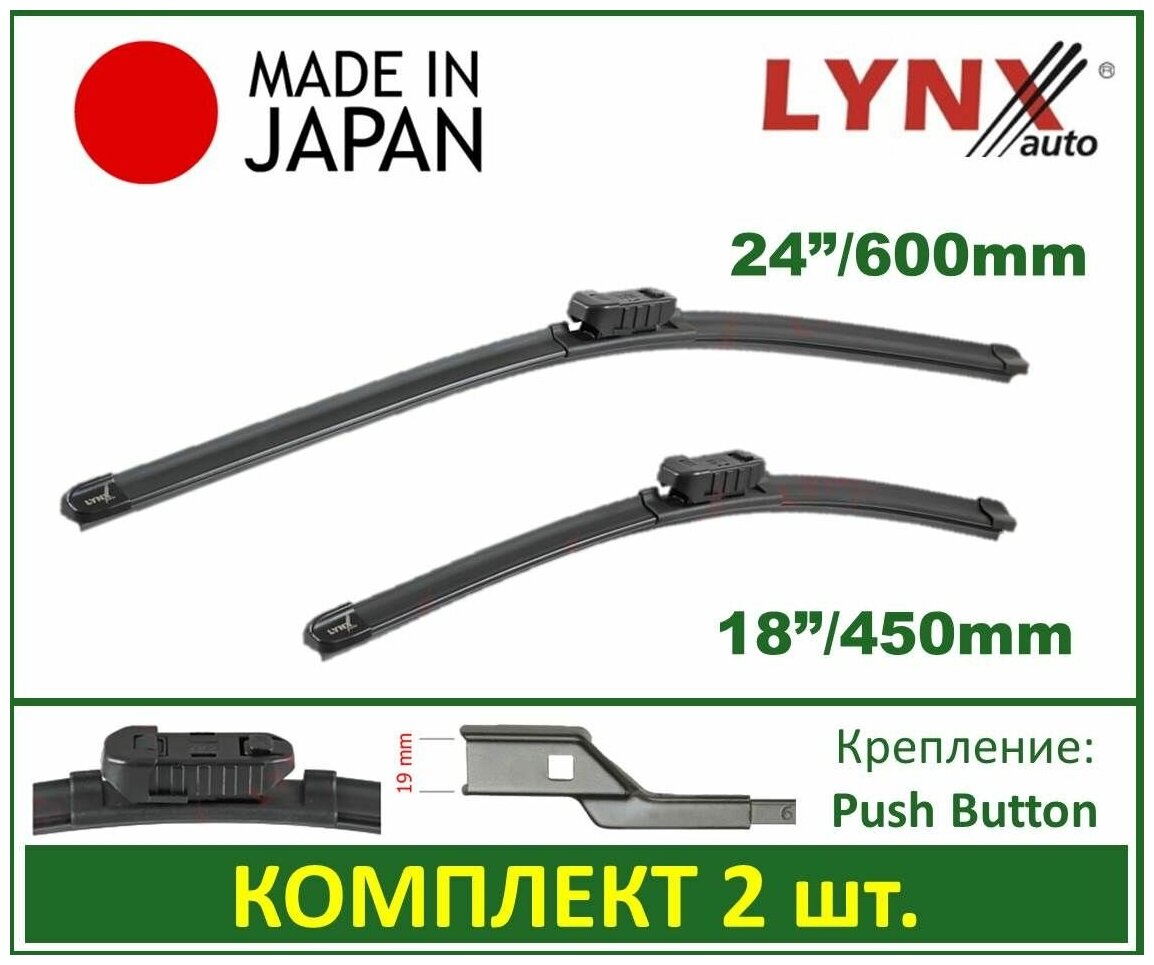 Комплект бескаркасных щеток стеклоочистителя 600мм(24) 450мм(18) LYNXauto XF6045L