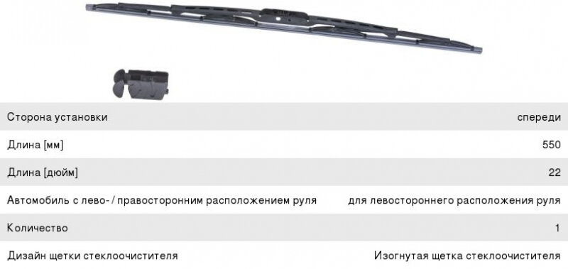 Щетка стеклоочистителя HELLA 550мм 9XW178878-221 информация: