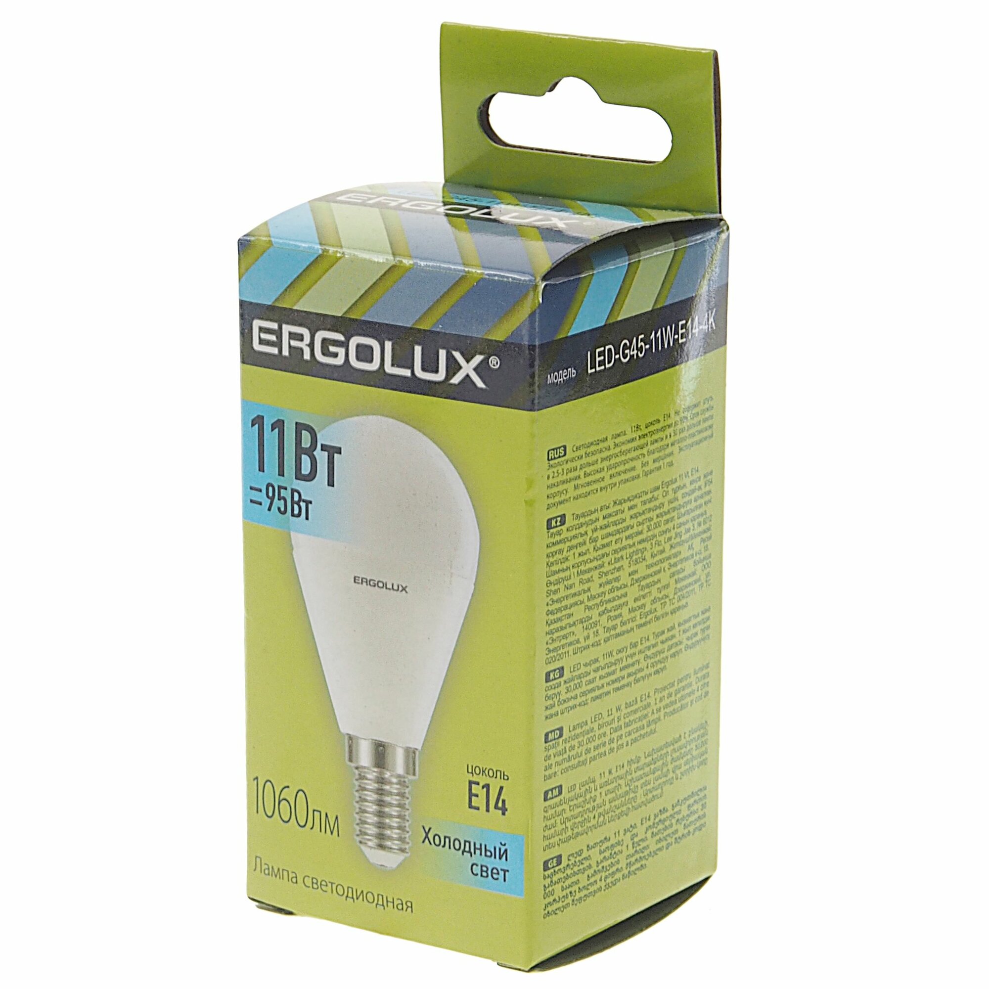 Лампа светодиодная Е14 G45 11W холодный свет ERGOLUX информация: