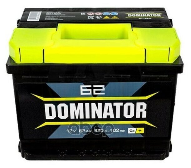 DOMINATOR 562108060 Аккумулятор 6СТ-62VLR 62Ah 620A 242х175х190 полярность 0 клеммы A тип крепления В3/В13 1шт