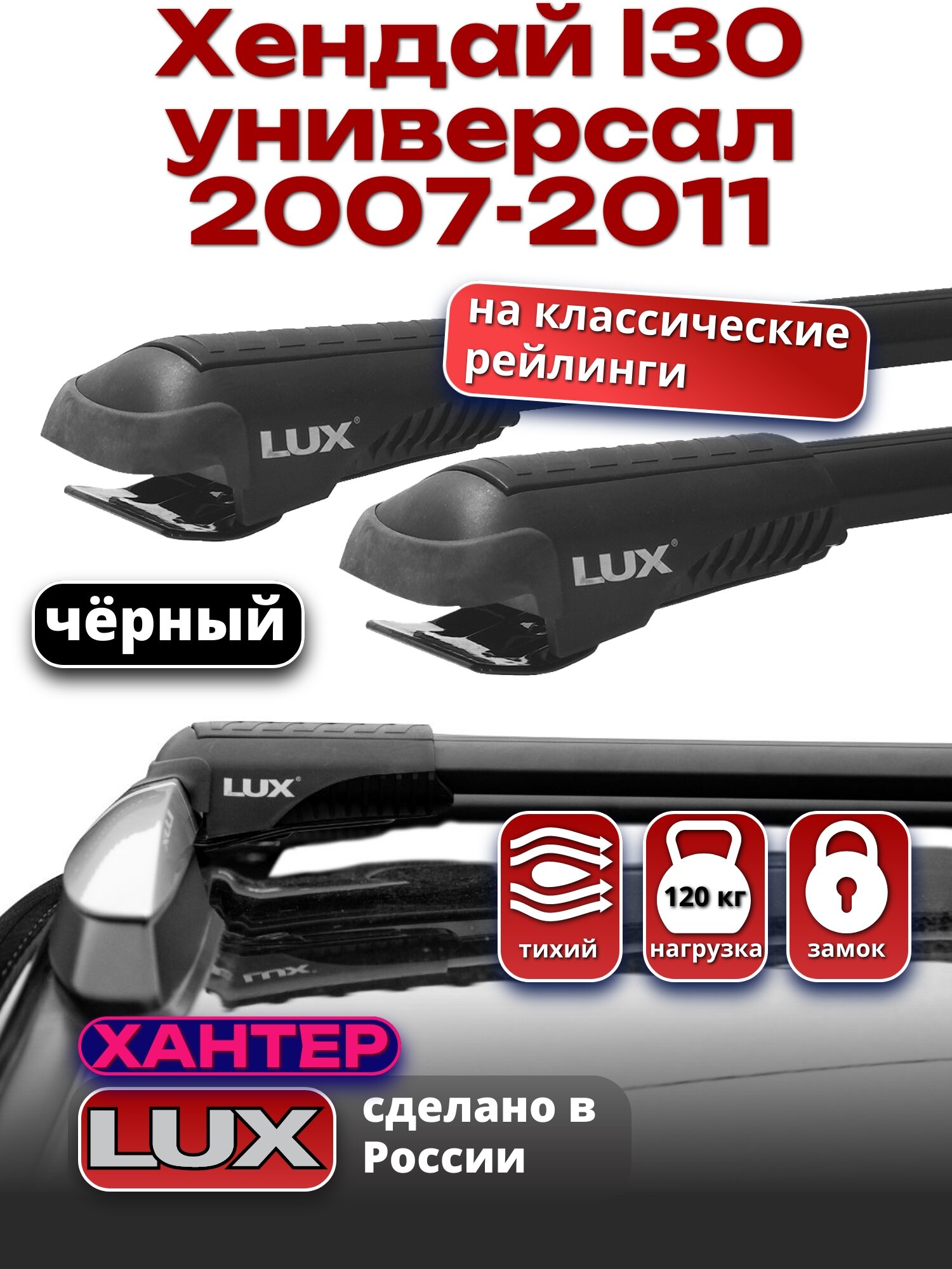 10 цен на Багажник на крышу Хендай I30 универсал 2007-2011 на рейлинги, черный, LUX хантер