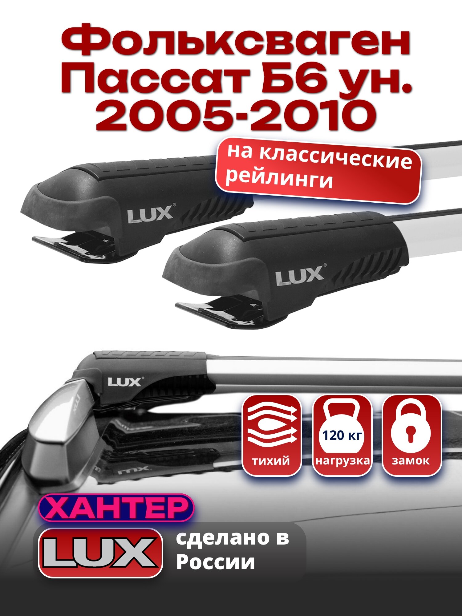 Багажник на крышу Фольксваген Пассат Б6 универсал 2005-2010 на рейлинги, LUX хантер информация: