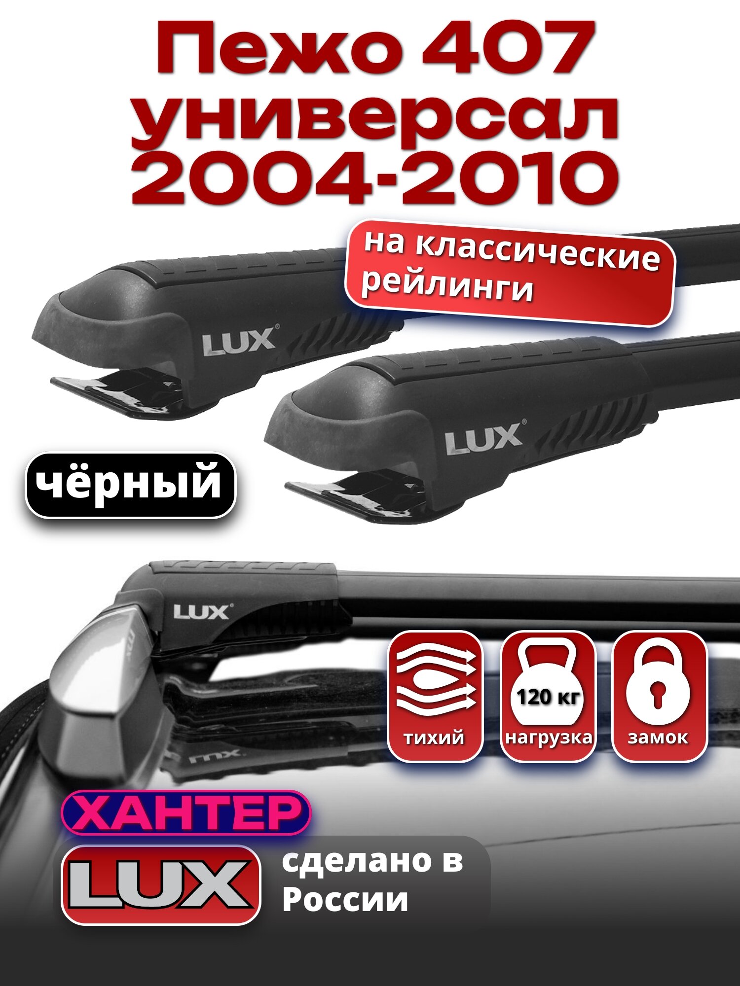 Багажник на крышу Пежо 407 универсал 2004-2010 на рейлинги, черный, LUX хантер информация: