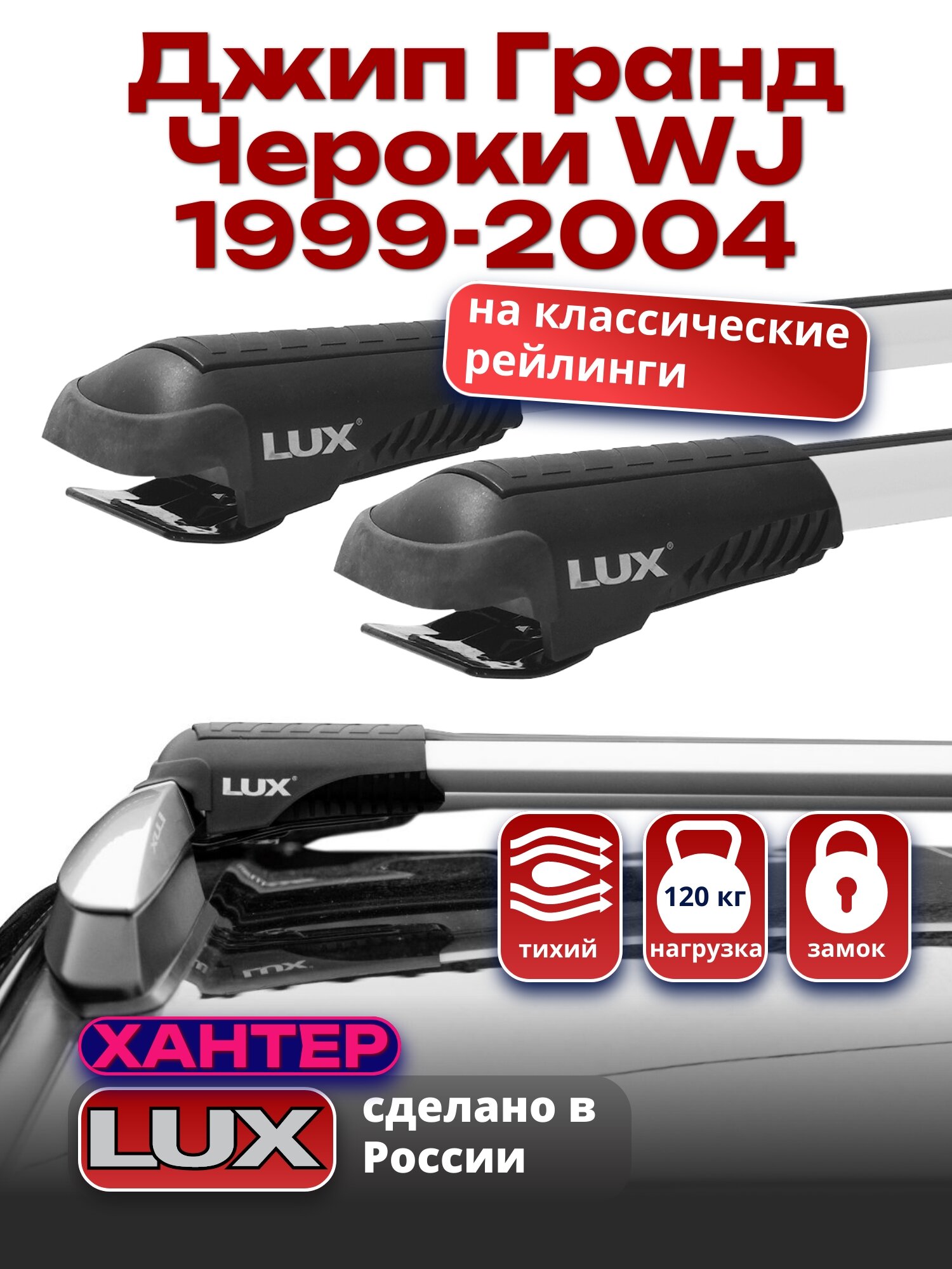 Багажник на крышу Джип Гранд Чероки WJ 1999-2004 на рейлинги, LUX хантер информация:
