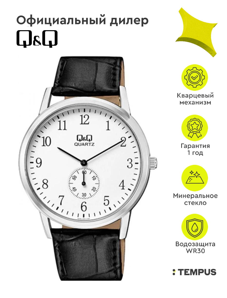 Мужские наручные часы Q&Q с черным ремешком информация: