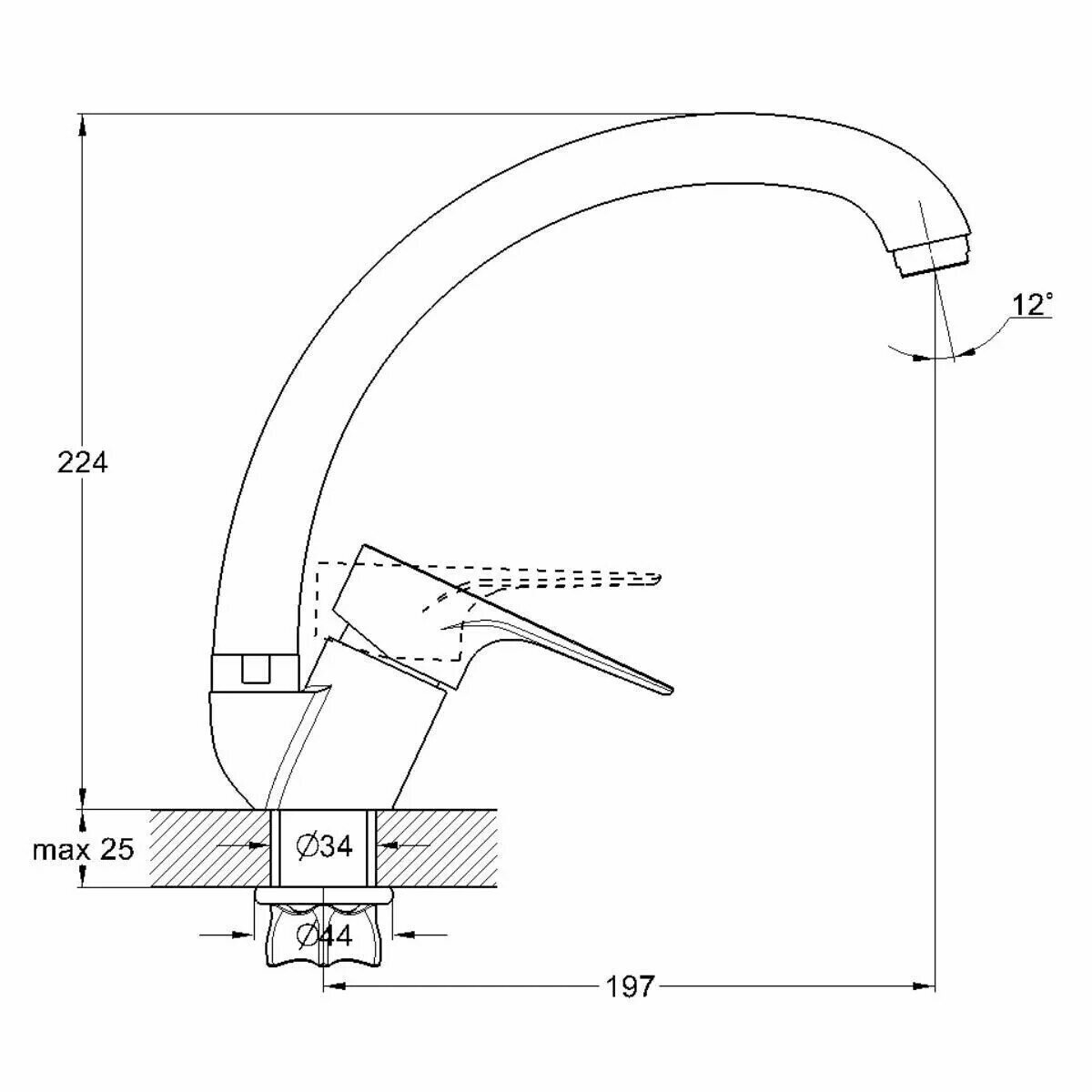 | Комплектация | Смеситель для кухни, Пластиковый аэратор с функцией легкой очистки, Керамический картридж 35 мм, Гибкая подводка 1/2" 40 см – 2 шт., Гайка "корона" для горизонтального крепления, Металлическая рукоятка |