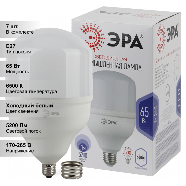 (7 шт.) Светодиодная лампочка ЭРА T160 65Вт 6500К E27-E40 информация: