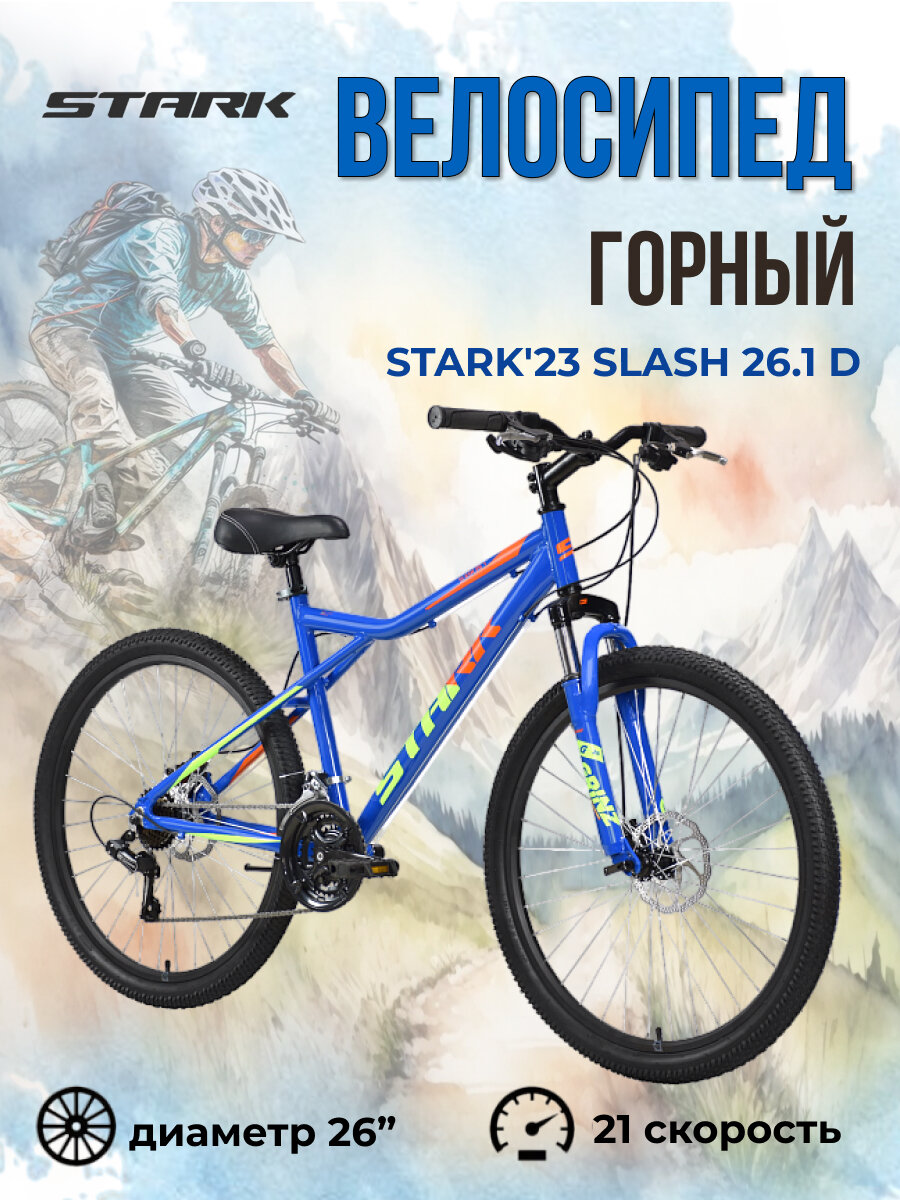 Велосипед горный взрослый Stark'23 Slash 26.1 D насыщенный синий горчичный рама 18" информация: